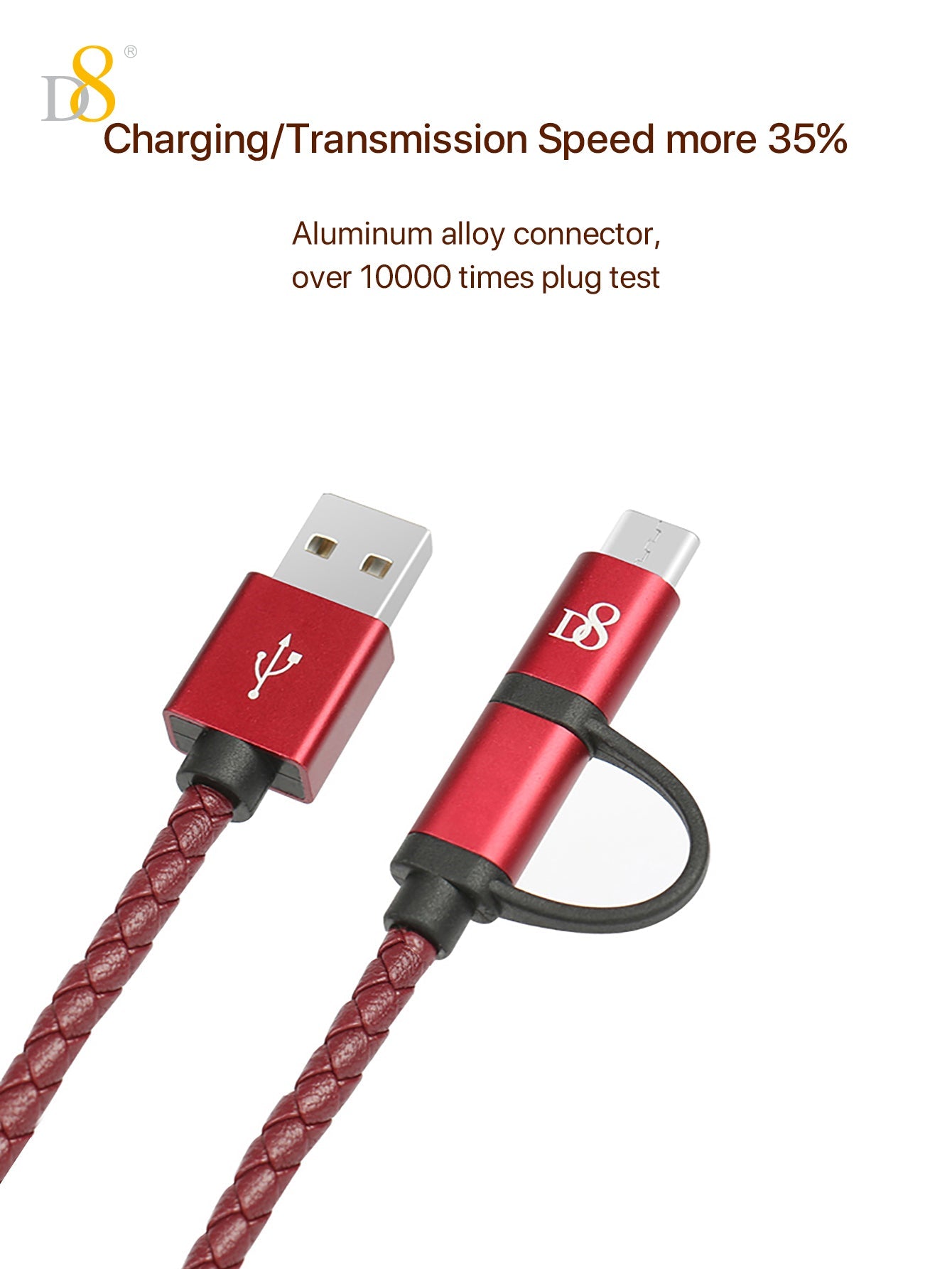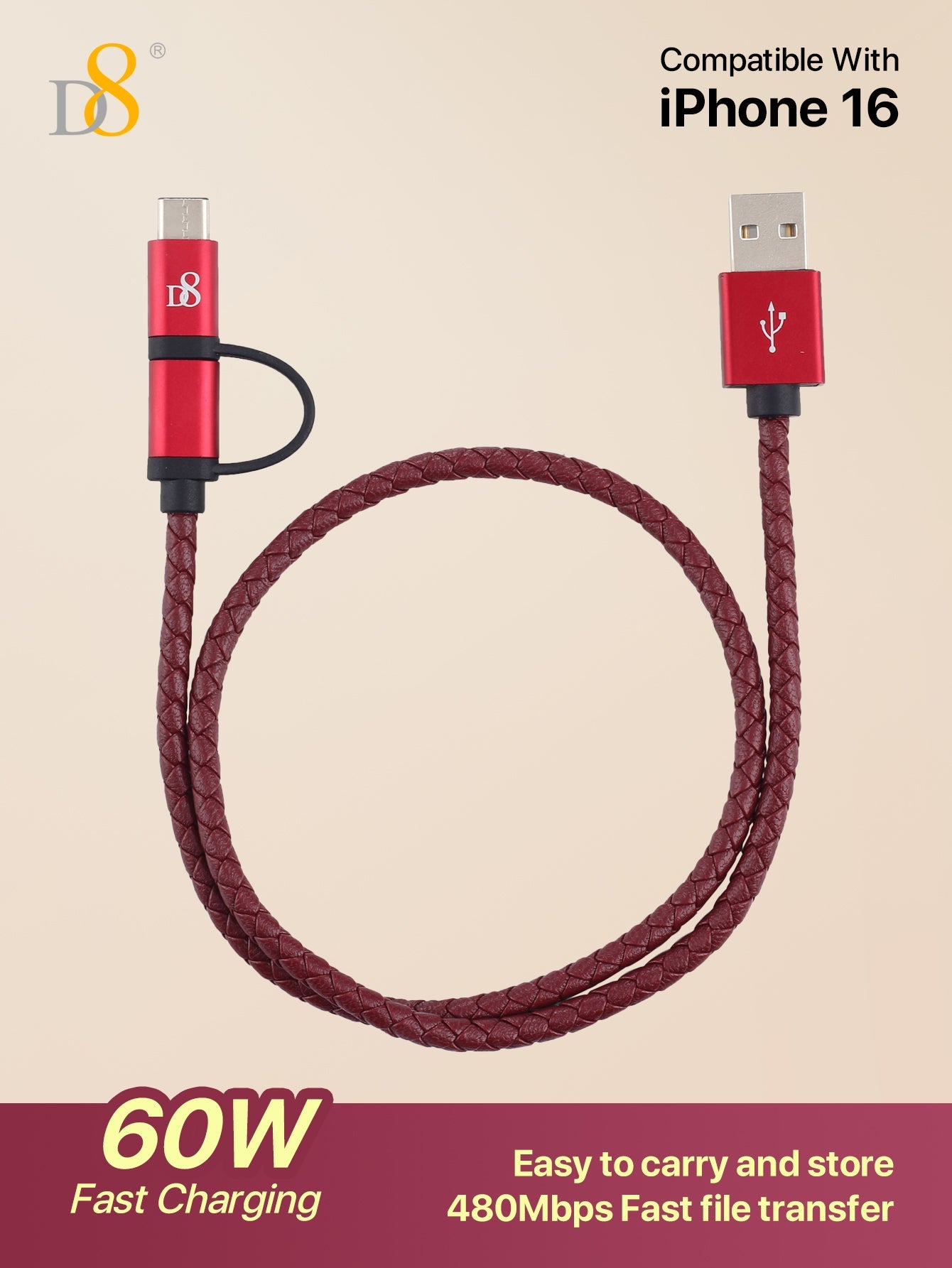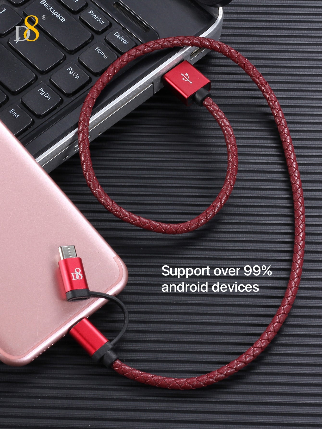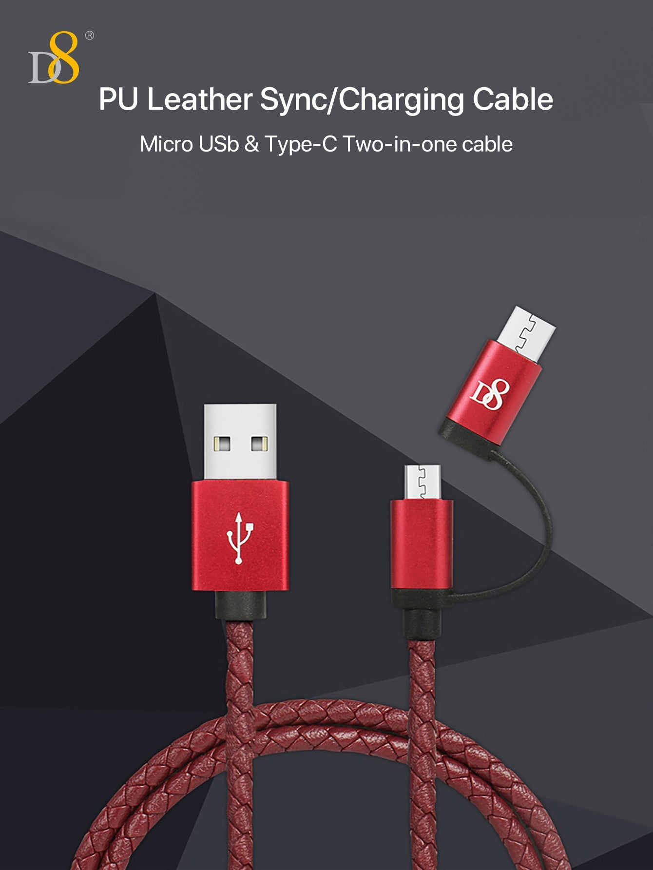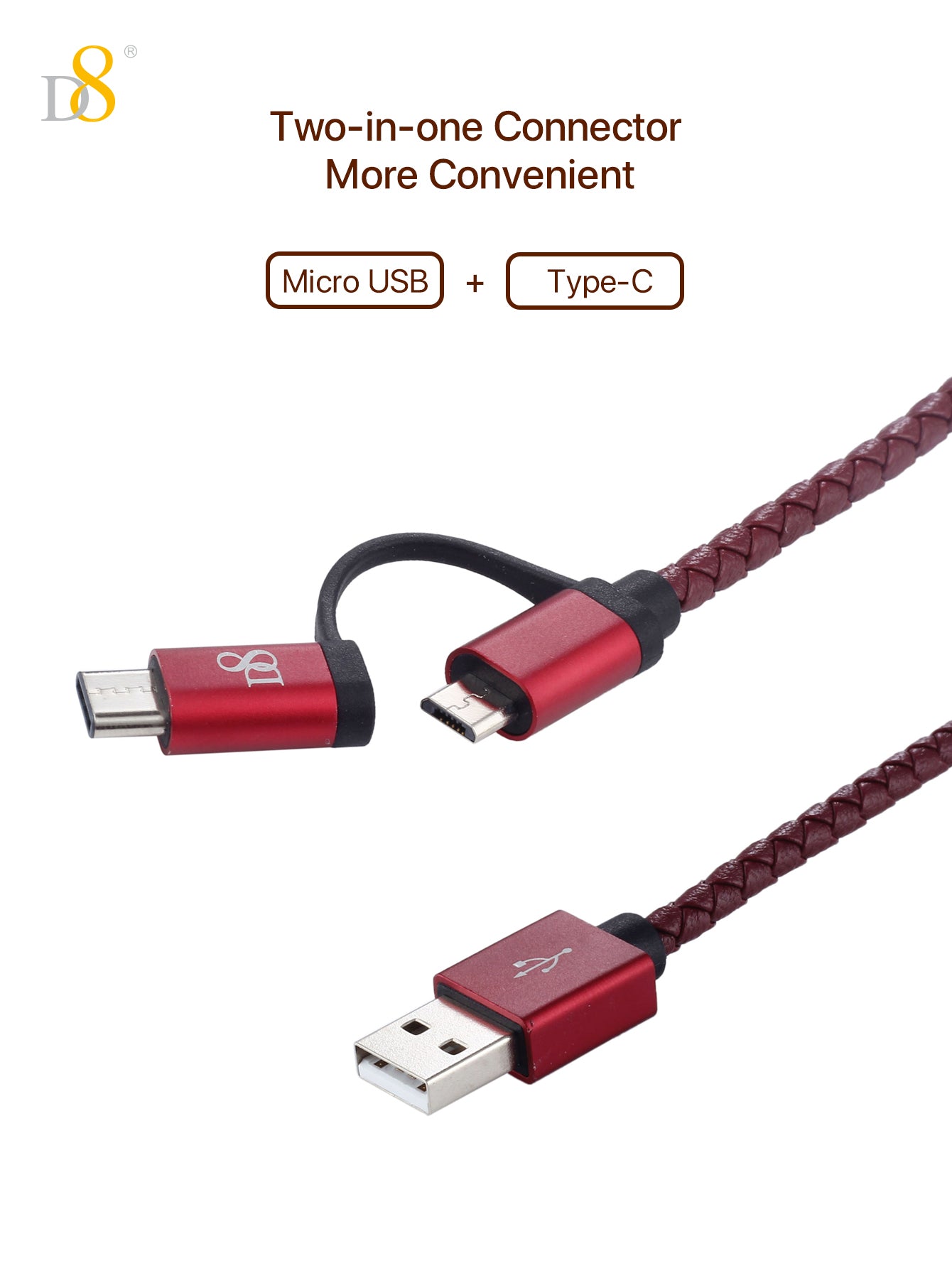 Dynamic8's 2-in-1 Micro USB & USB-C Cable offers the perfect blend of style, durability, and functionality. Whether you need to charge your smartphone, tablet, or other mobile devices, this cable delivers fast and reliable charging. The premium PU leather and aluminum construction ensures it stands out from ordinary cables, offering both aesthetic appeal and practical benefits.
