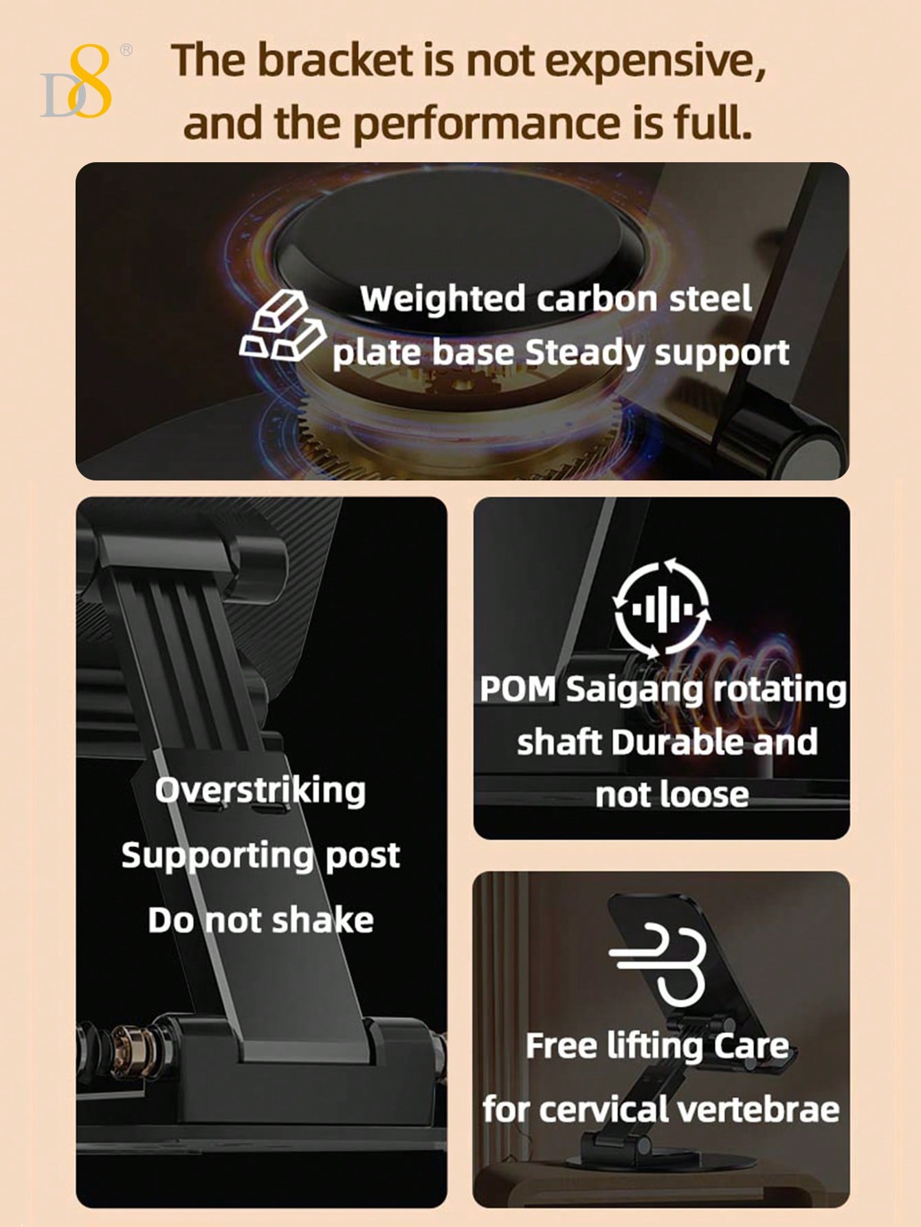 Upgrade your workspace with the D8 360° Dual Folding Mobile Phone/Tablet Stand. Enjoy adjustable, hands-free viewing for all your devices. Order now for ultimate convenience!