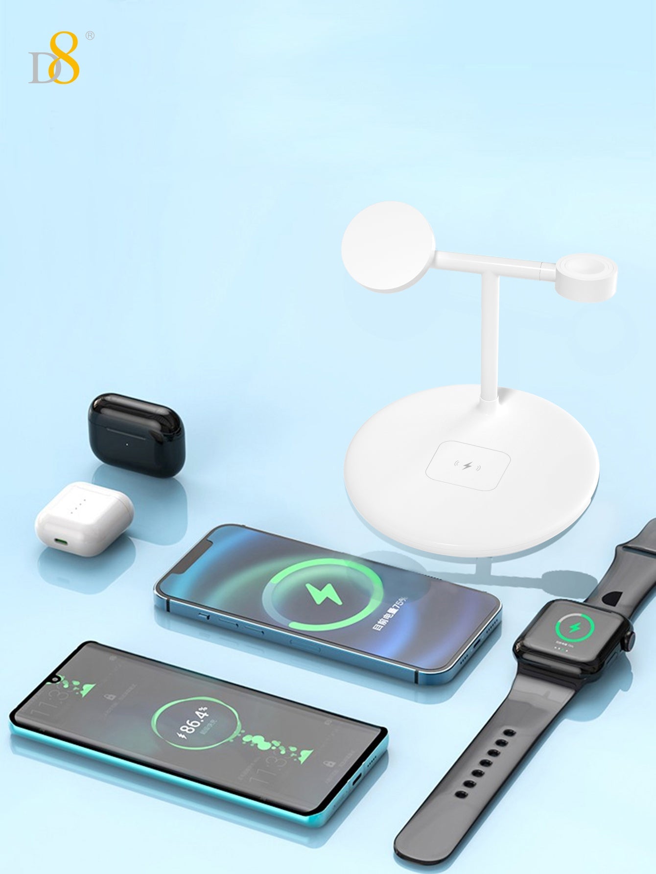 Stay Ahead with Wireless Charging Innovations As the demand for wireless charging grows, stay ahead with Dynamic8's latest innovations. Our 3-in-1 station embodies the future of wireless charging, providing you with the most advanced and reliable technology available.