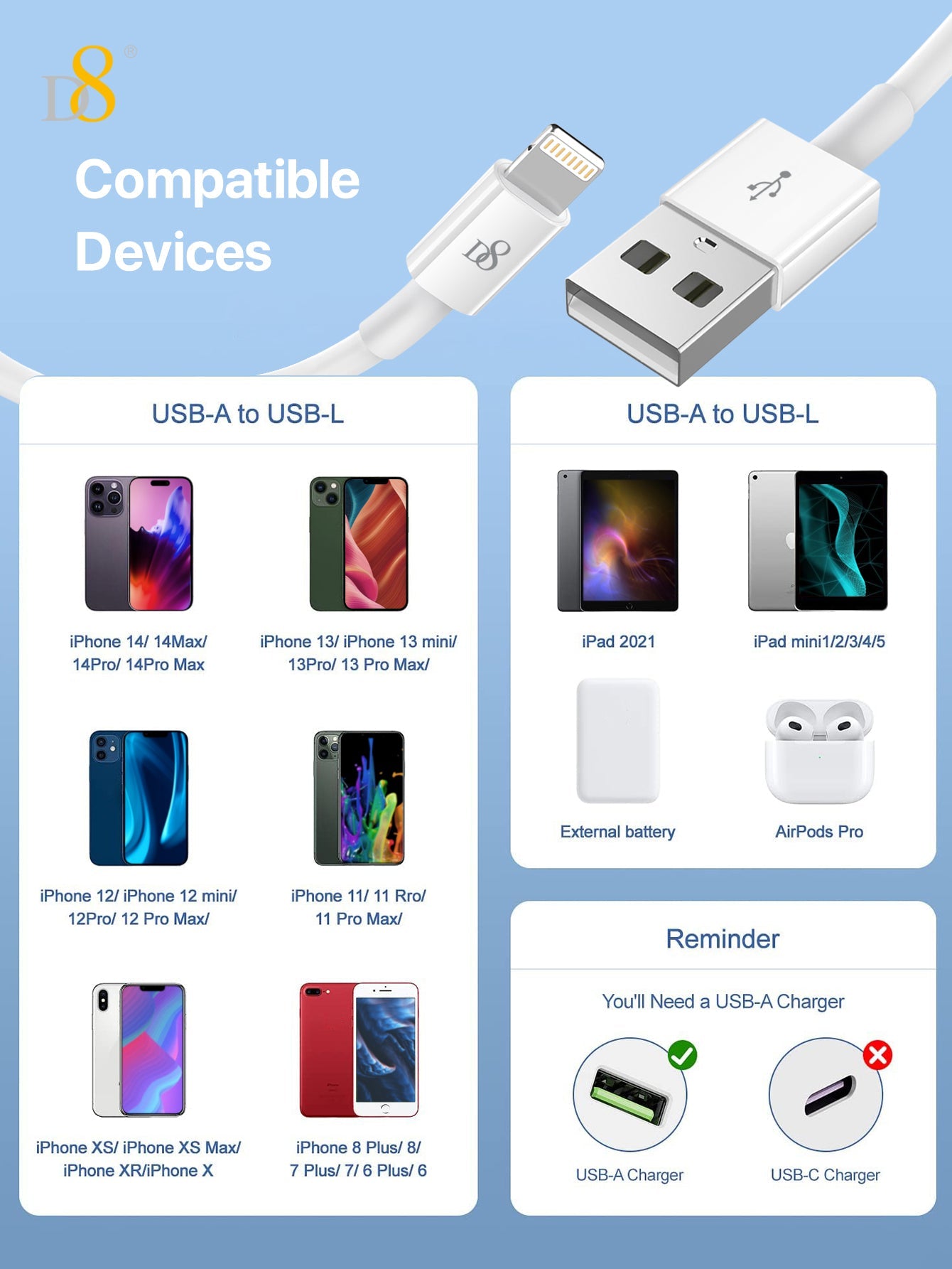 Experience the convenience and efficiency of the 3M long PVC MFi Lightning Cable. Perfect for charging your iPhone, iPad, and other Apple devices, this cable combines length, durability, and Apple certification for the ultimate charging solution. Order now and enjoy fast, reliable charging wherever you are!