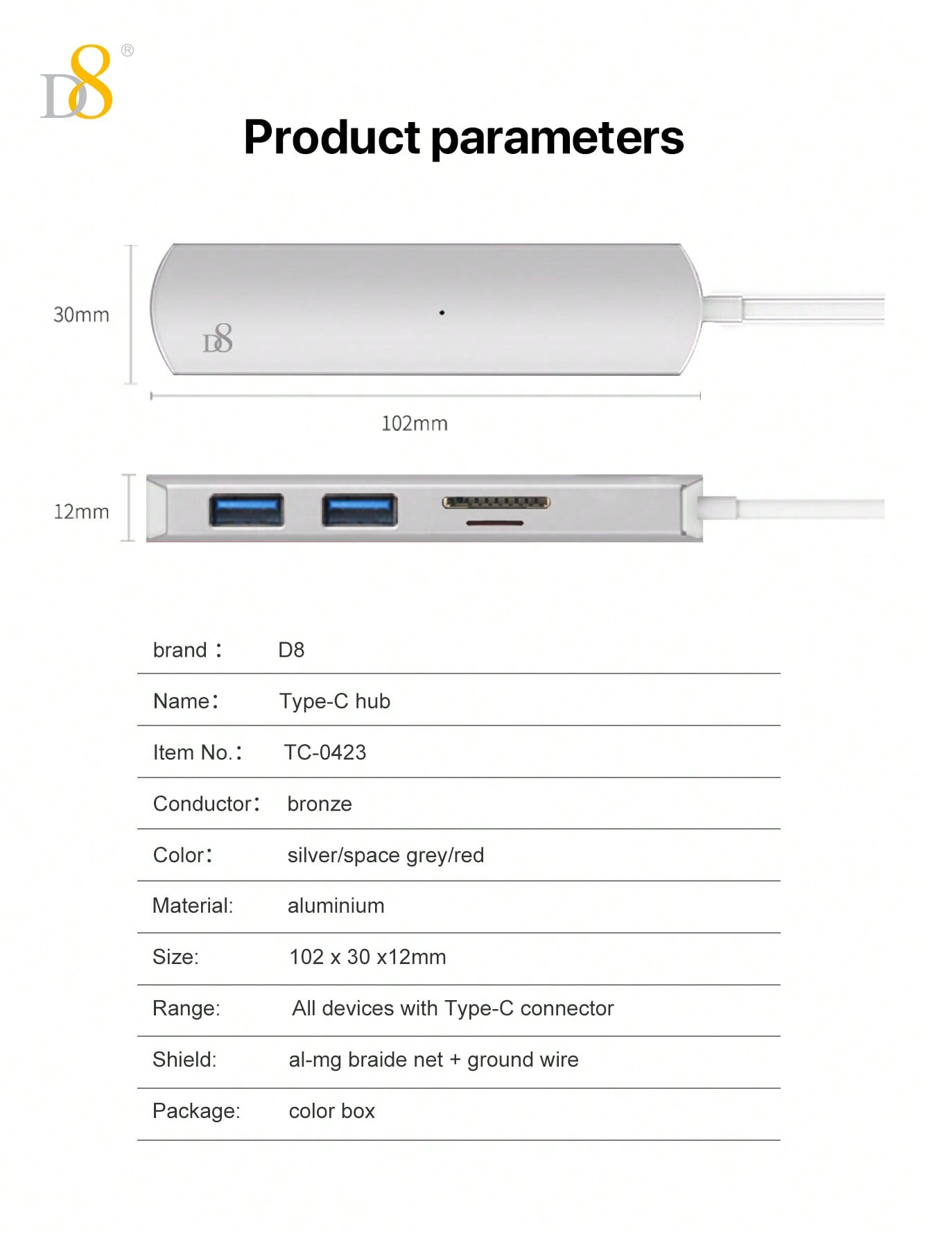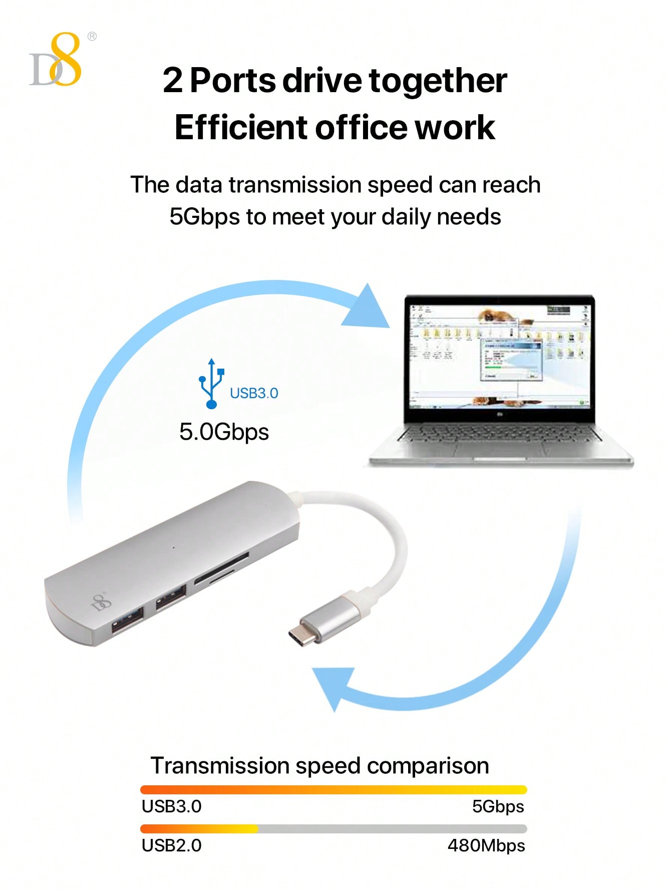 Upgrade your connectivity with the D8 4-in-1 USB C Hub. Enjoy lightning-fast data transfers and enhanced multitasking. Get yours today for seamless productivity!