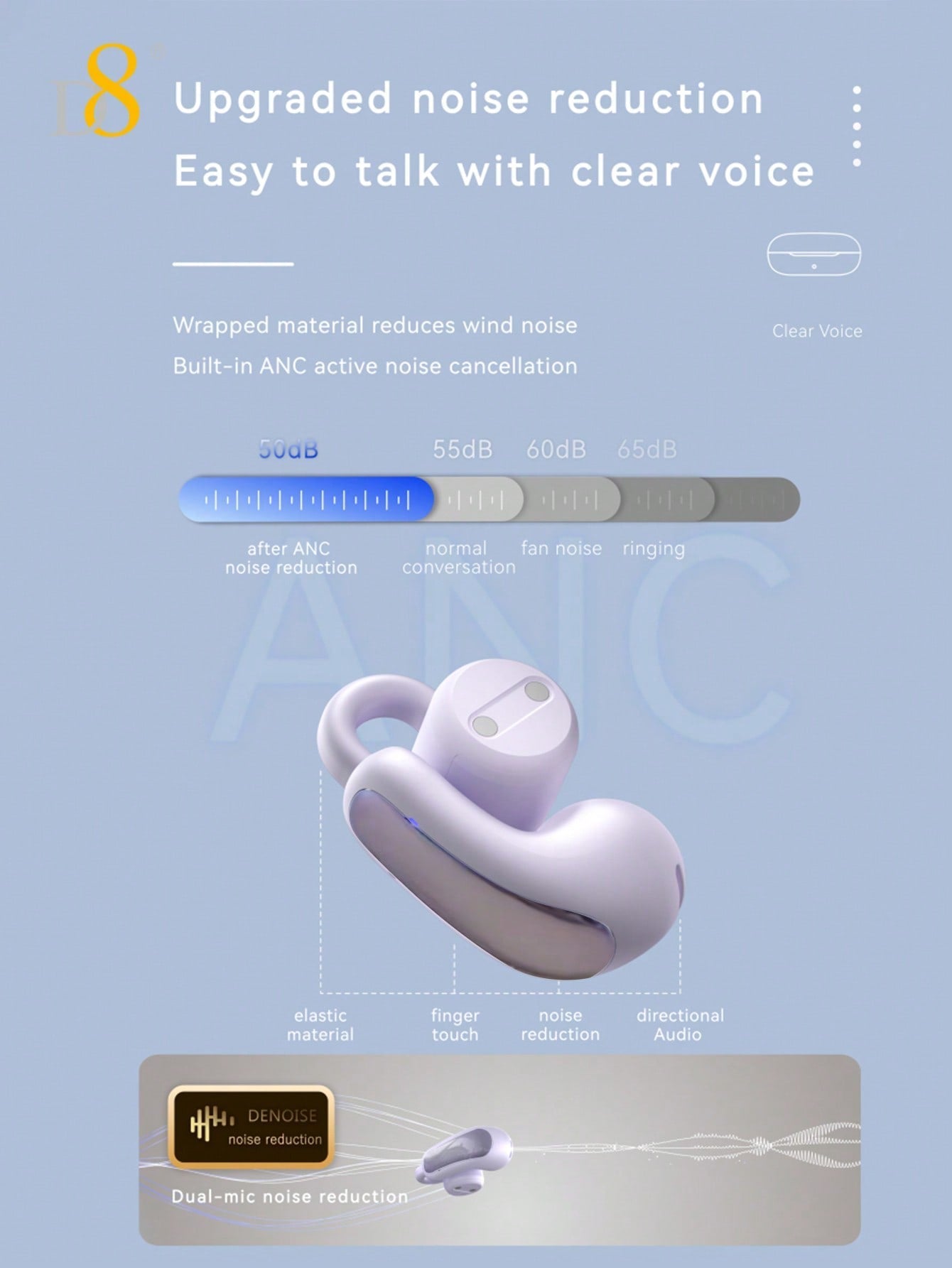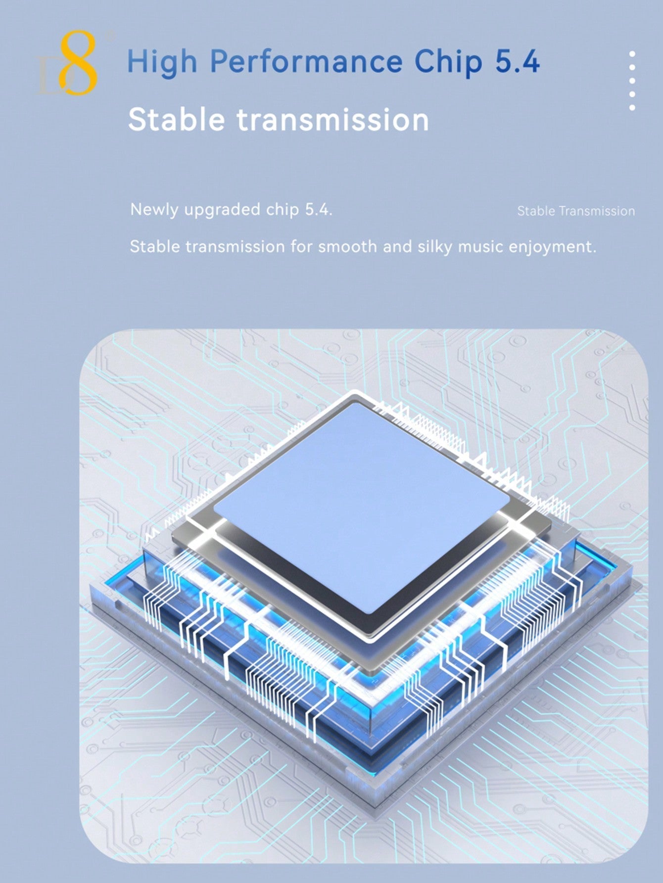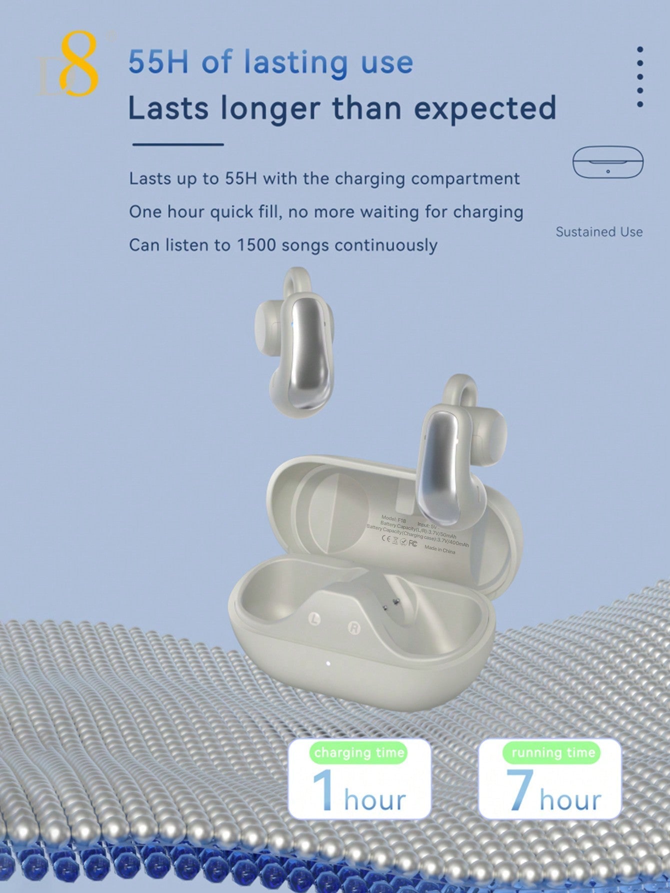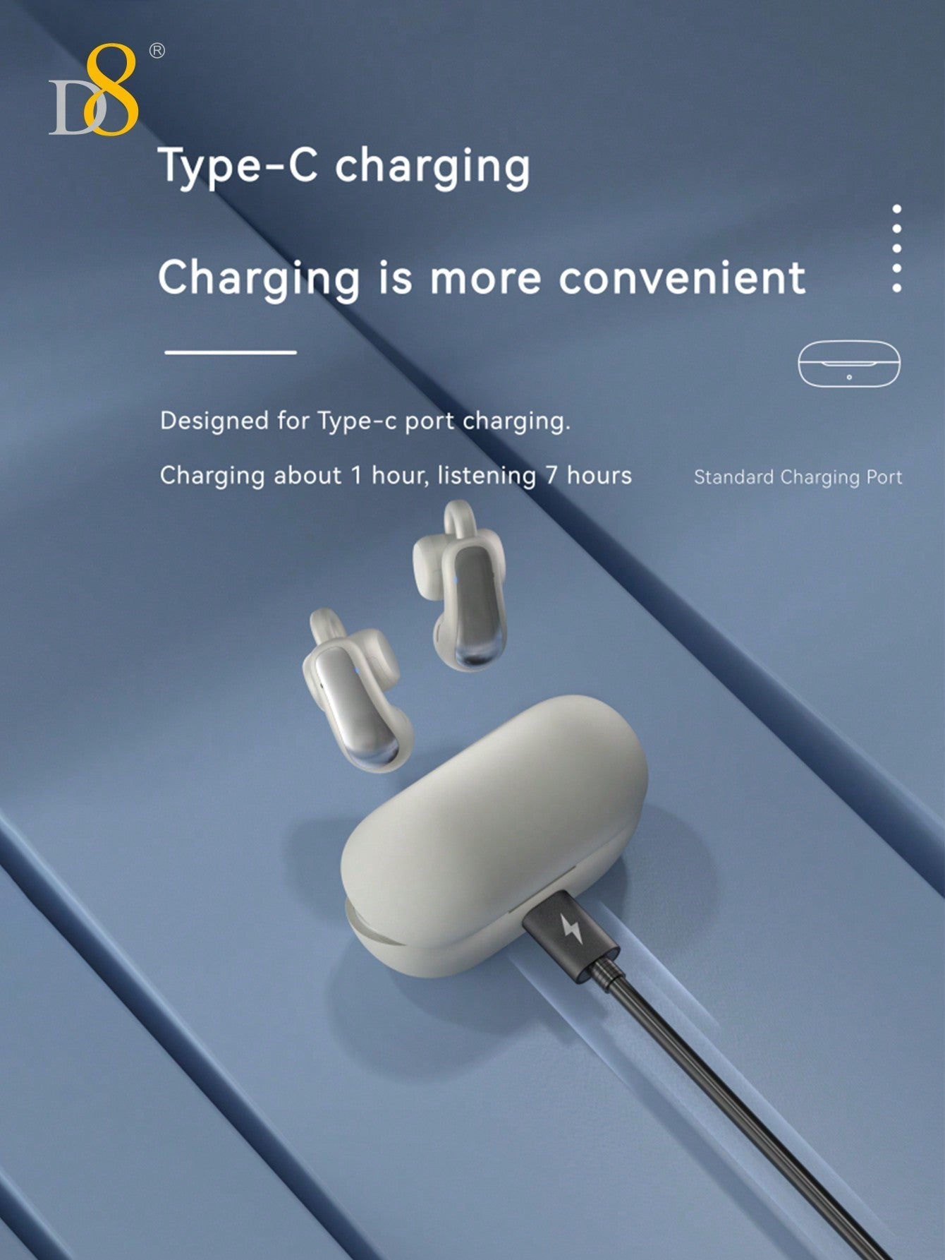 The D8 2024 Open Design Wireless Earbuds combine style, comfort, and performance for the ultimate audio experience. With HiFi sound, auto-connect technology, and an impressive 55-hour battery life, these earbuds are ideal for anyone seeking high-quality sound for music, calls, or entertainment. The open design ensures a comfortable and stable fit, while Type-C charging offers the convenience you need for a hassle-free experience. Whether you're working out, commuting, or just enjoying music at home, the D8 wireless earbuds have you covered.