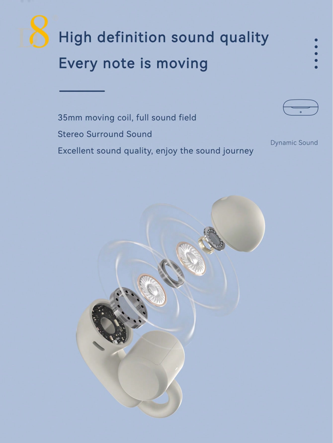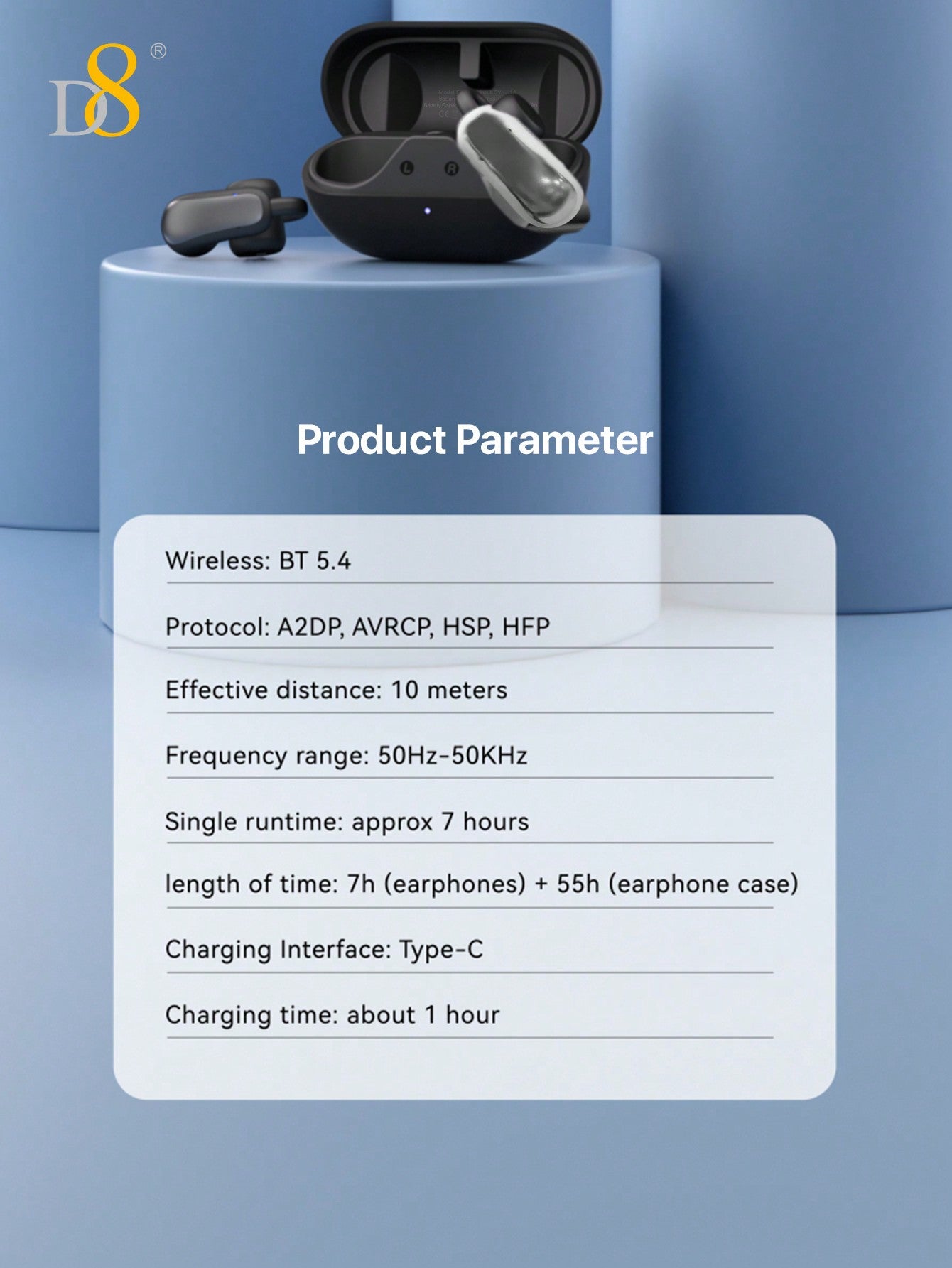 Introducing the D8 2024 Open Design Wireless Earbuds, a revolutionary pair of earbuds that offer an unparalleled listening experience. Designed with HiFi sound quality, these wireless earbuds provide crystal-clear audio that makes you feel like you’re listening to music in a whole new world. With auto-connect technology and a 55-hour battery life, they deliver unmatched convenience for long-lasting use. The open design ensures a comfortable fit and stable sound experience for all-day wear, while Type-C charging offers more efficient and convenient power-up.