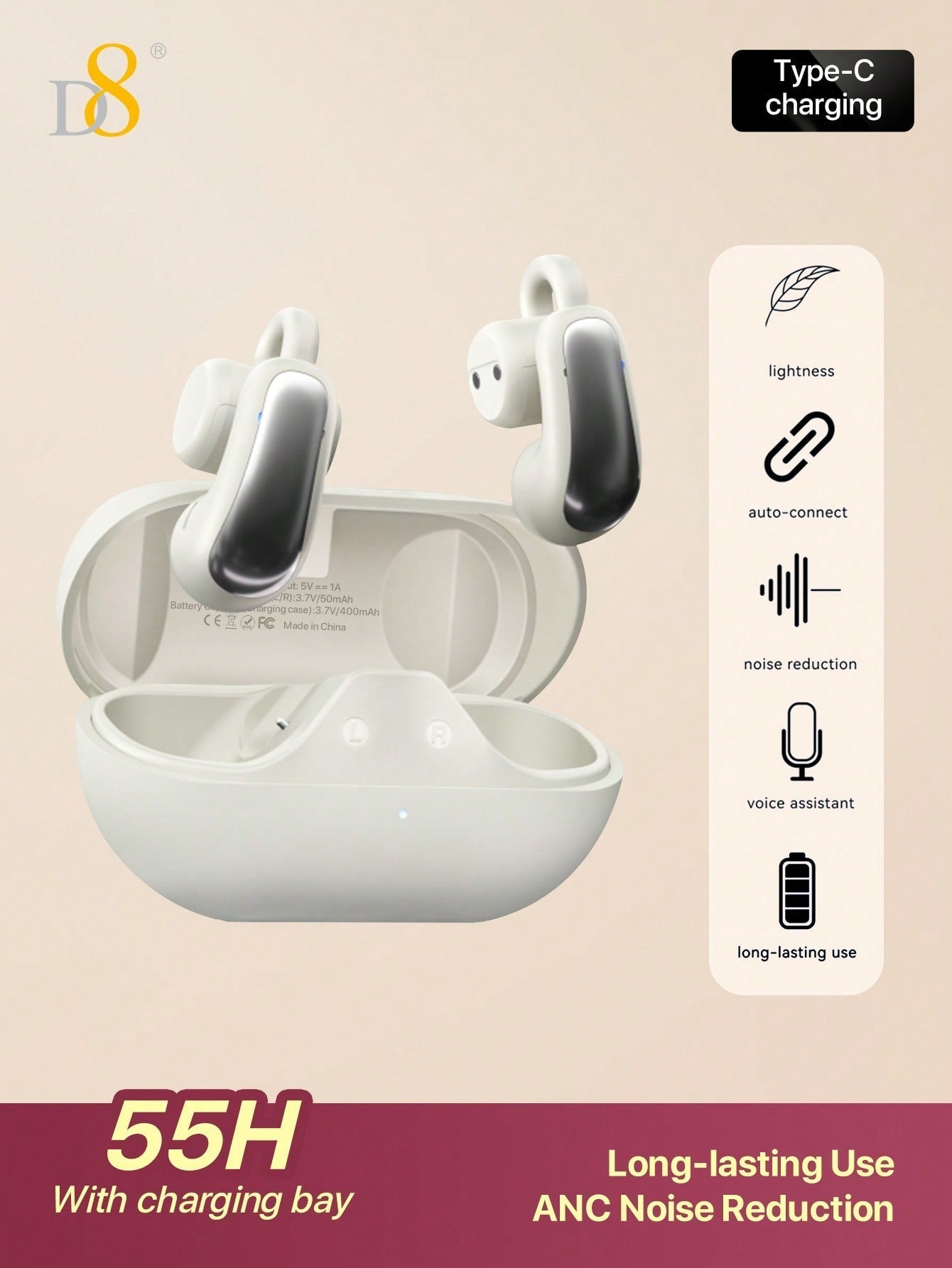D8 Wireless Earbuds, 2024 Open Design, HiFi Sound, 55H Playtime, Type-C