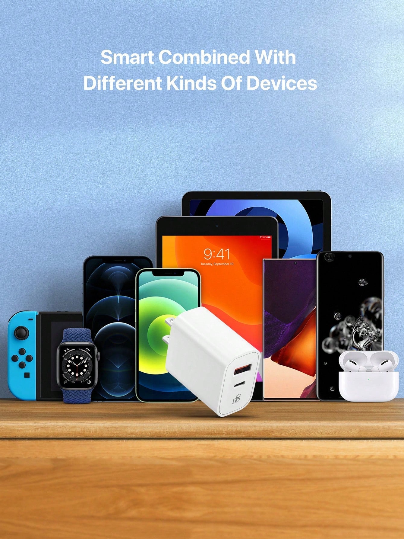 D8 20W USB C Dual Port PD Fast Charger - Type C Wall Adapter for iPhone 15, Galaxy, iPad Pro & More