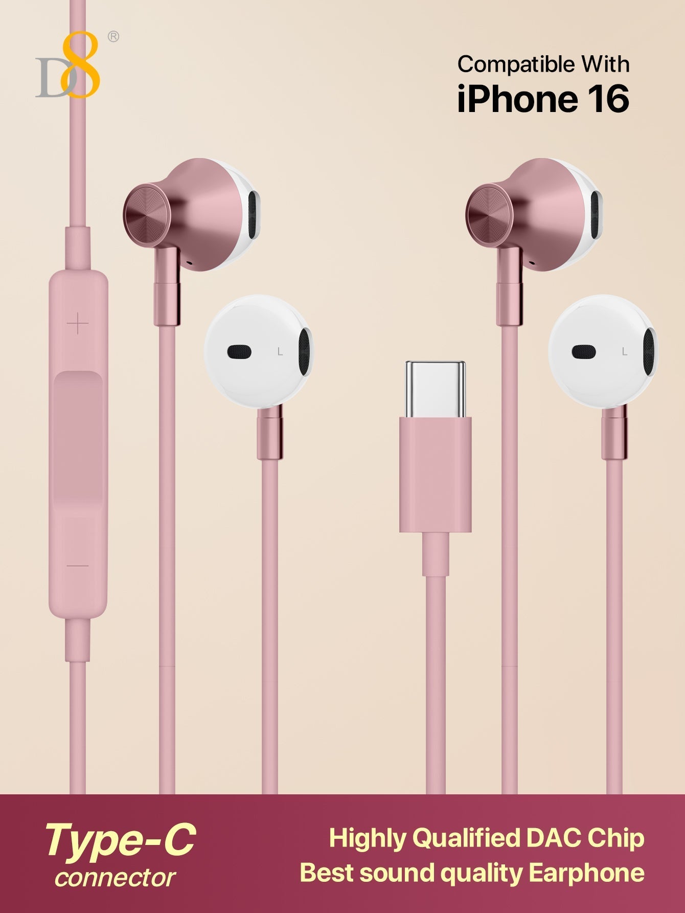D8 USB-C Earbuds 2-Pack, Mic & Volume Control for iPhone/Galaxy/iPad