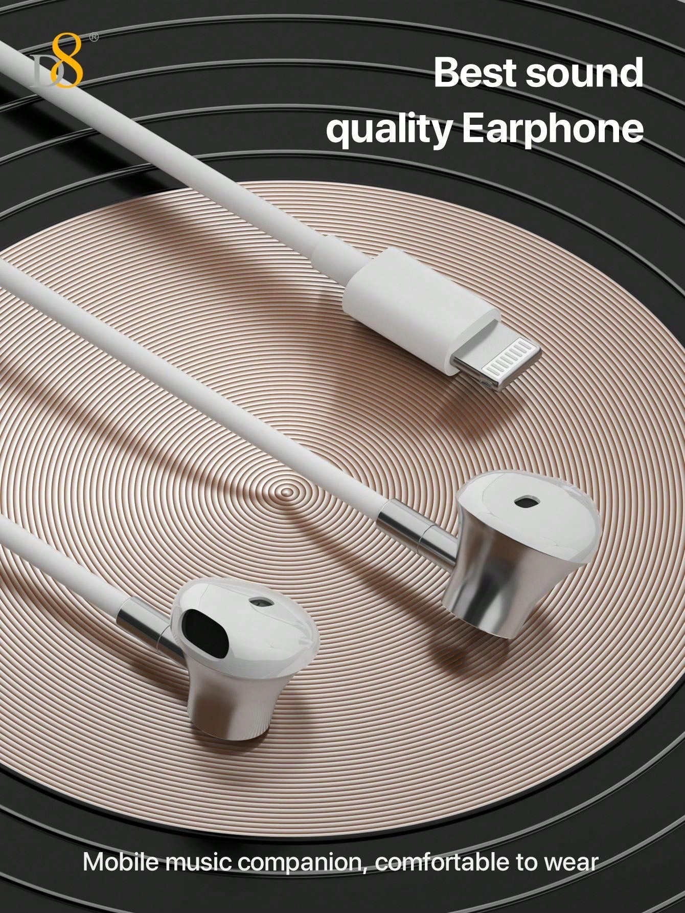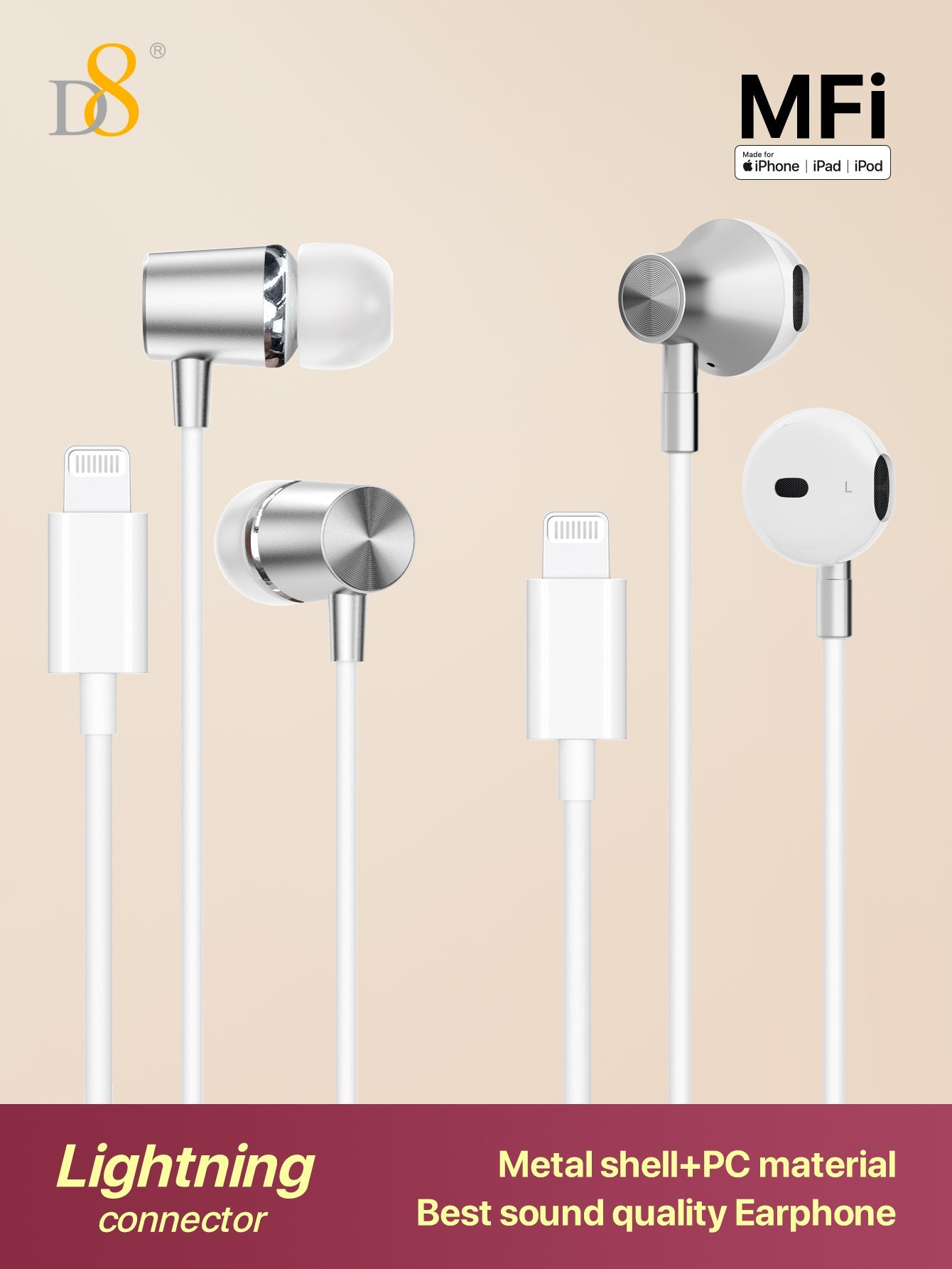 Elevate your audio experience with the D8 MFi Certified Lightning Earbuds. Enjoy high-quality sound and the convenience of built-in controls, all with the reliability of MFi certification. Order now and get your 2-piece set today!