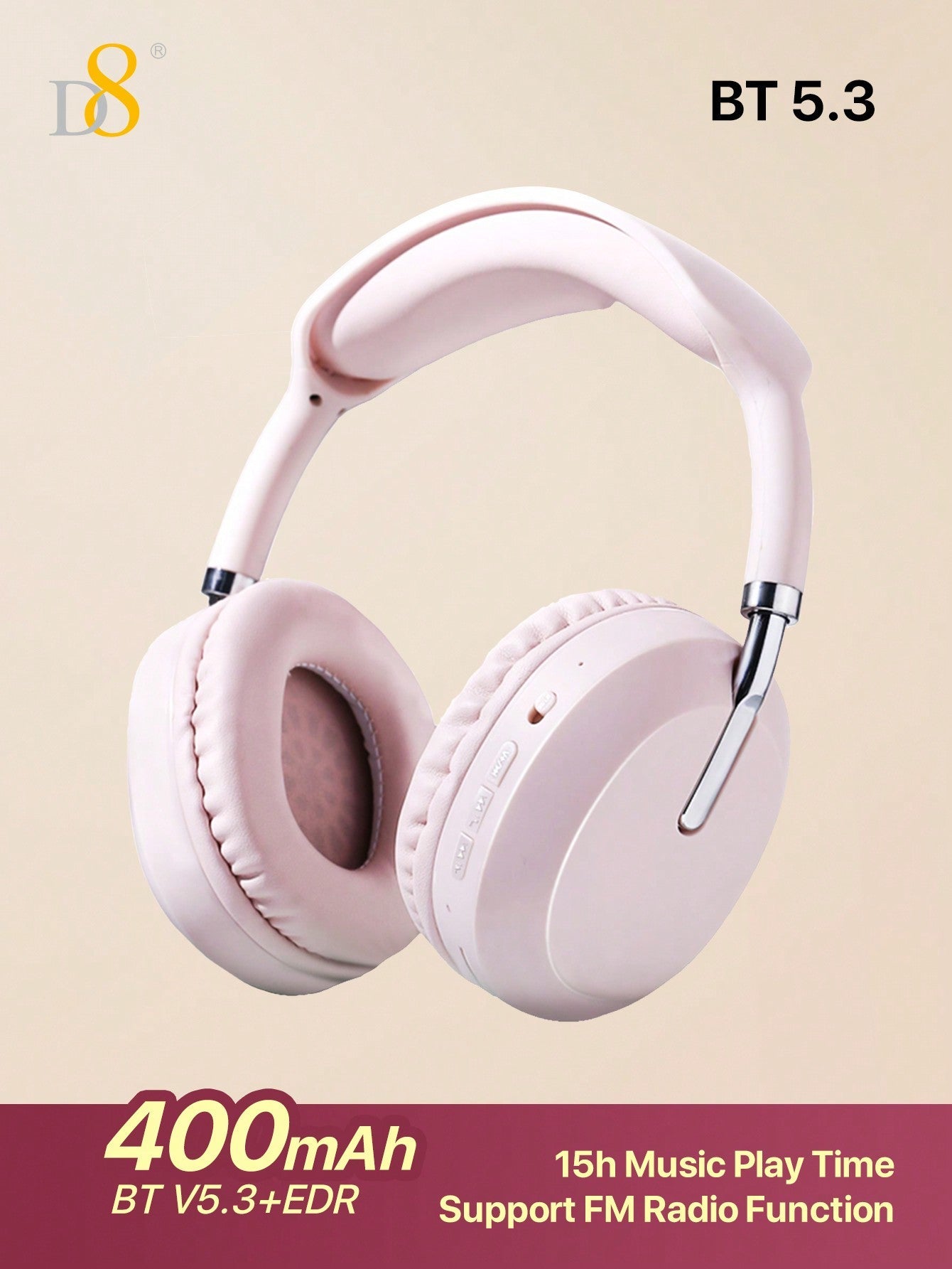 D8 Retractable Over-Ear Headphones, Wireless/Wired, 15H Playtime, Foldable