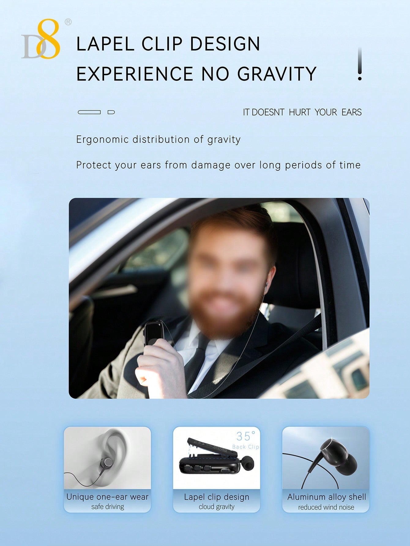 The D8 Retractable Wireless Headset is the ultimate hands-free Bluetooth solution for professionals, drivers, and active users. With its long battery life, noise-canceling mic, LCD display, and ergonomic over-ear buds, this headset provides superior sound quality and comfort for all-day use. Whether you're on a call, working out, or commuting, the D8 headset delivers seamless connectivity and unmatched convenience.