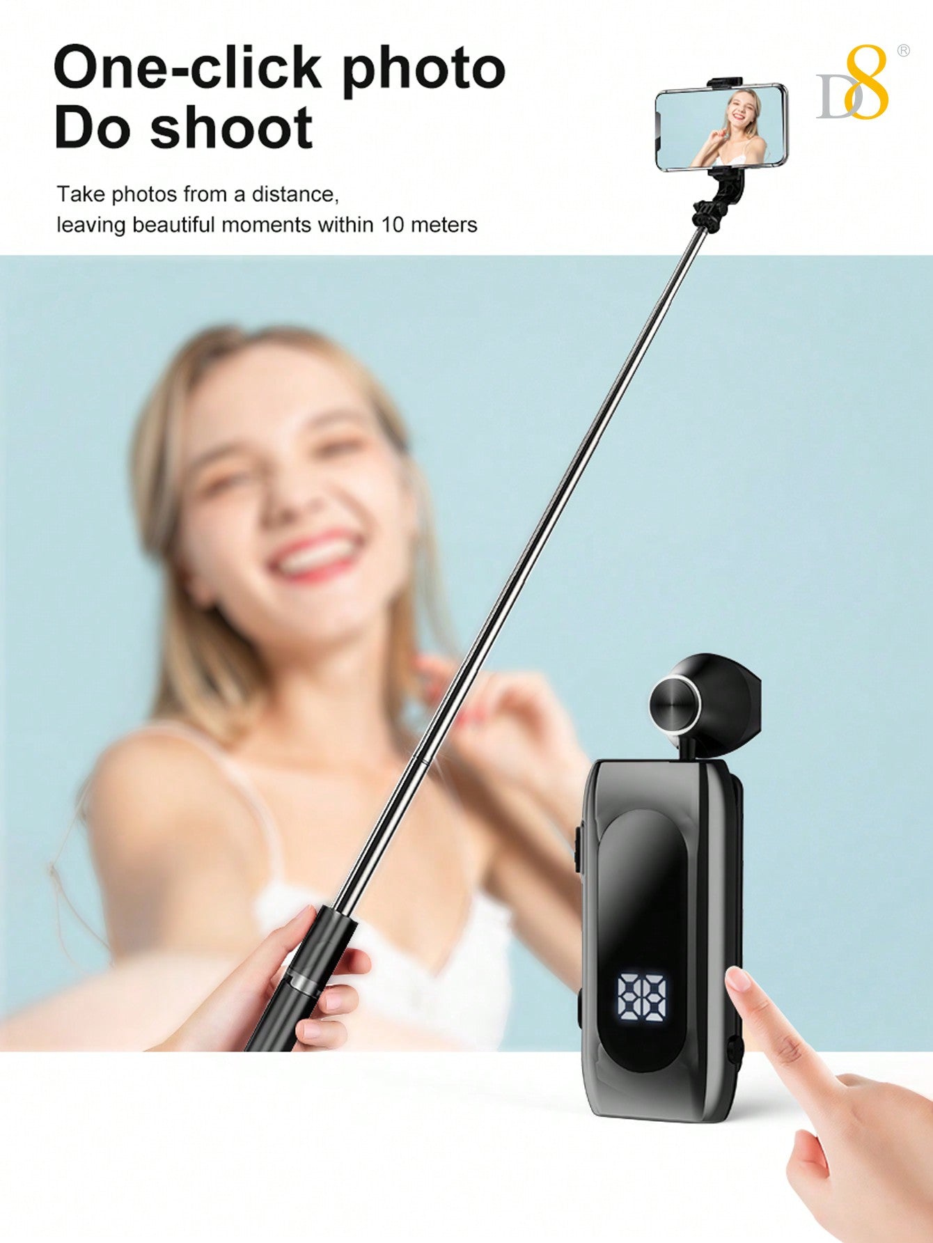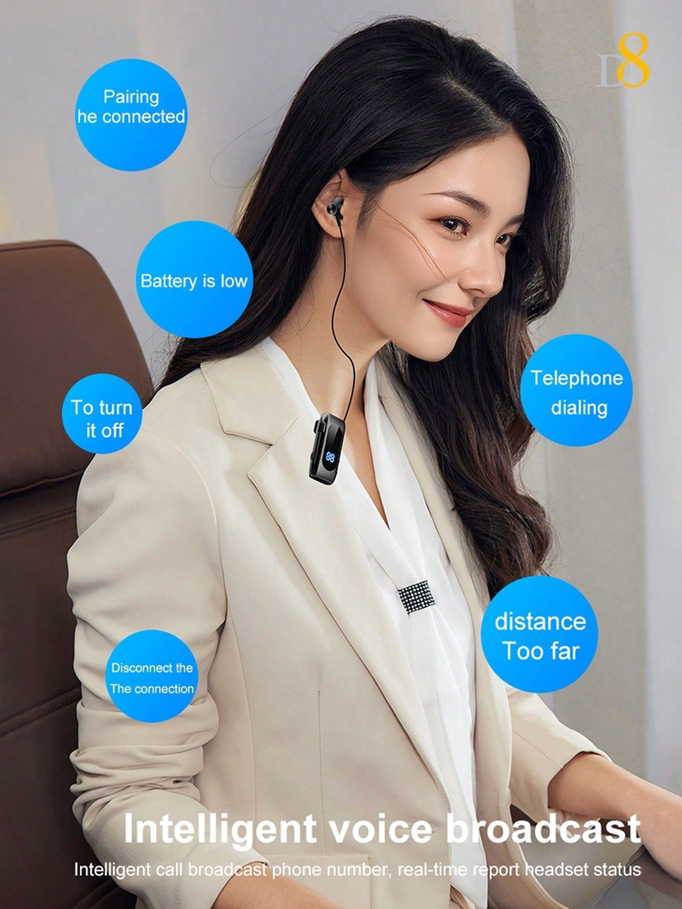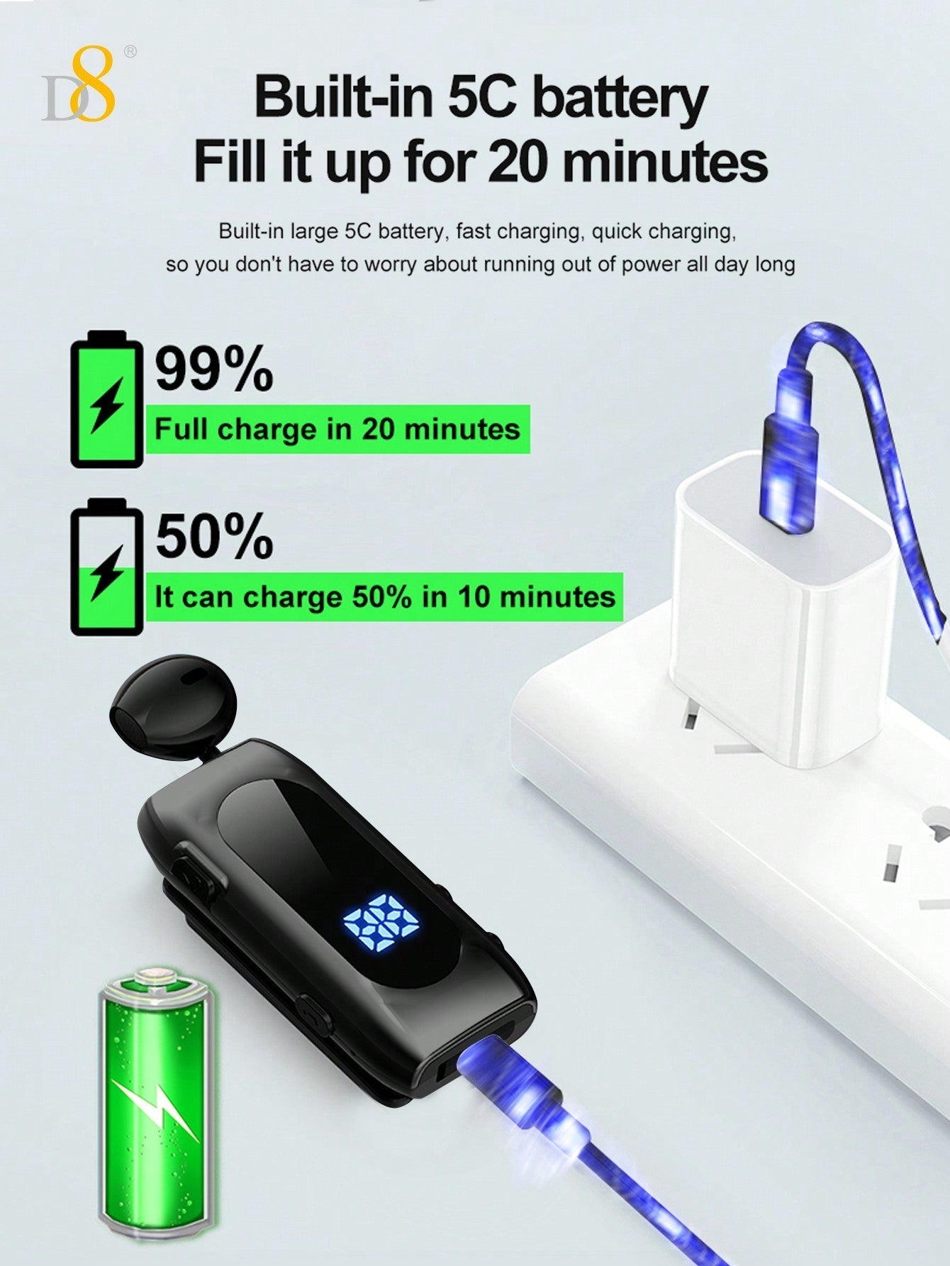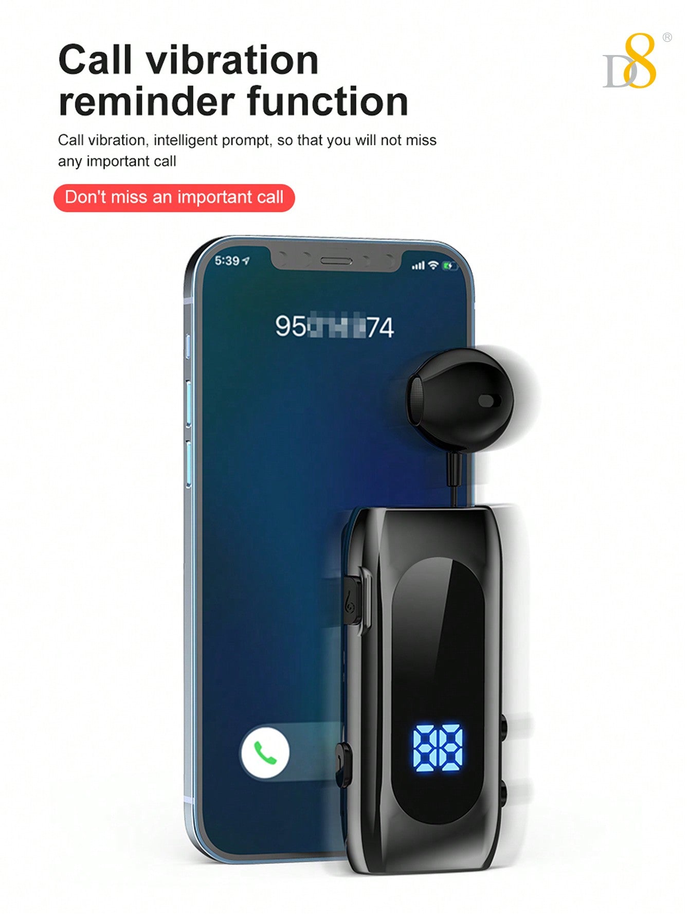 D8 Retractable Wireless Headset, LED Display, Noise-Canceling, 20H Talk