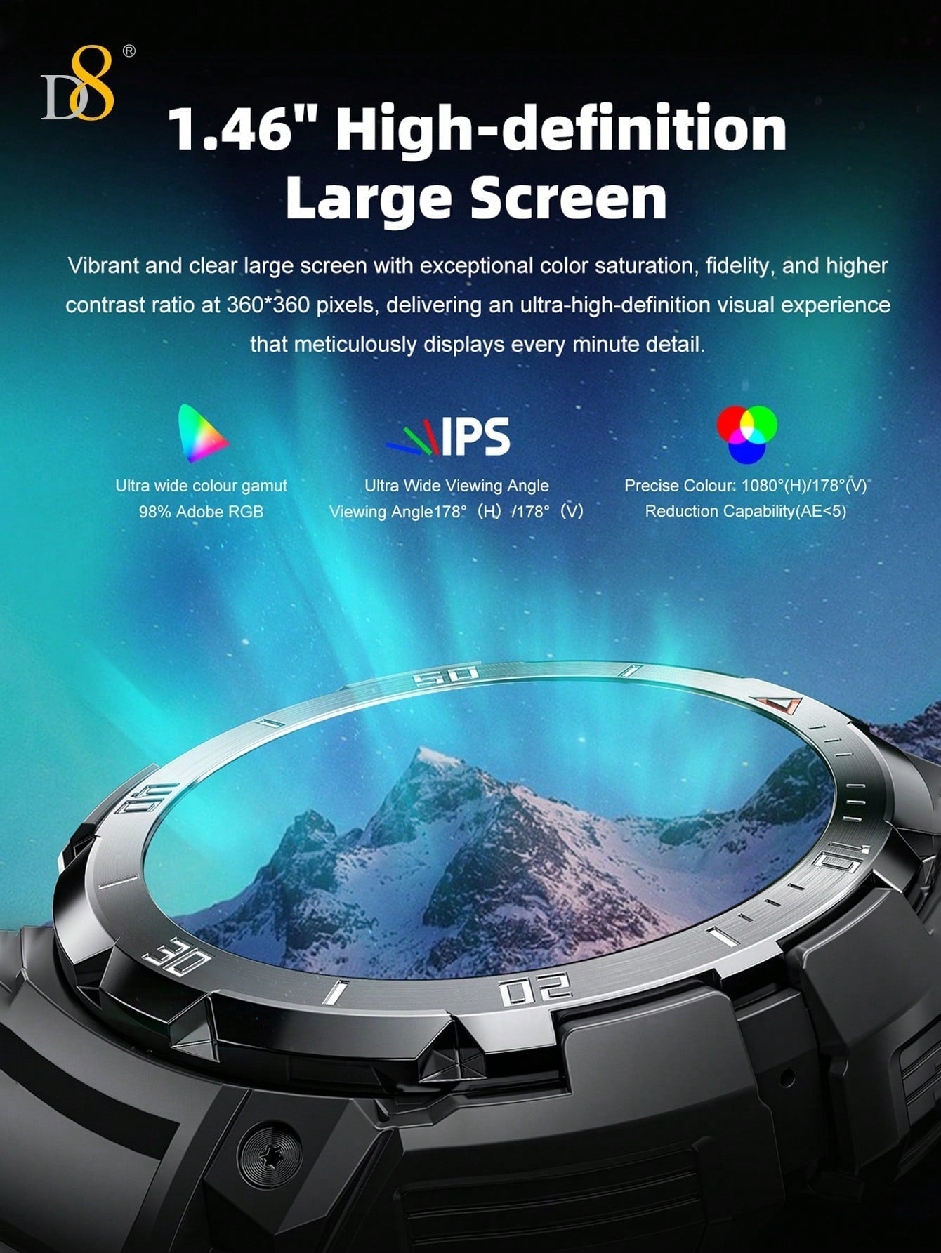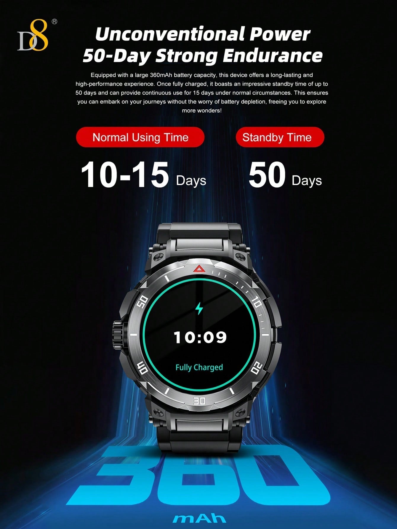 - Long Battery Life: The D8 smartwatch is built for extended usage, offering long battery life, allowing you to go longer between charges, even during intense workout sessions or long outdoor activities.