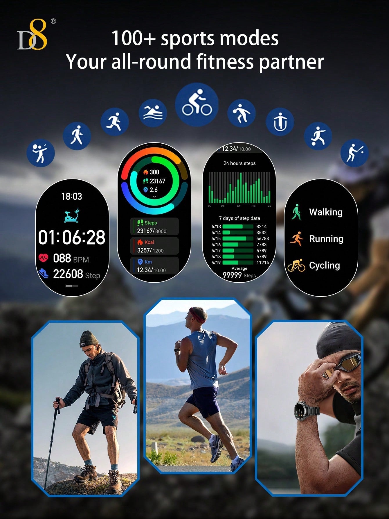 - Fitness & Sports Tracking: With 100+ sports modes, the D8 smartwatch covers everything from indoor workouts to outdoor sports, offering precise tracking for various activities.