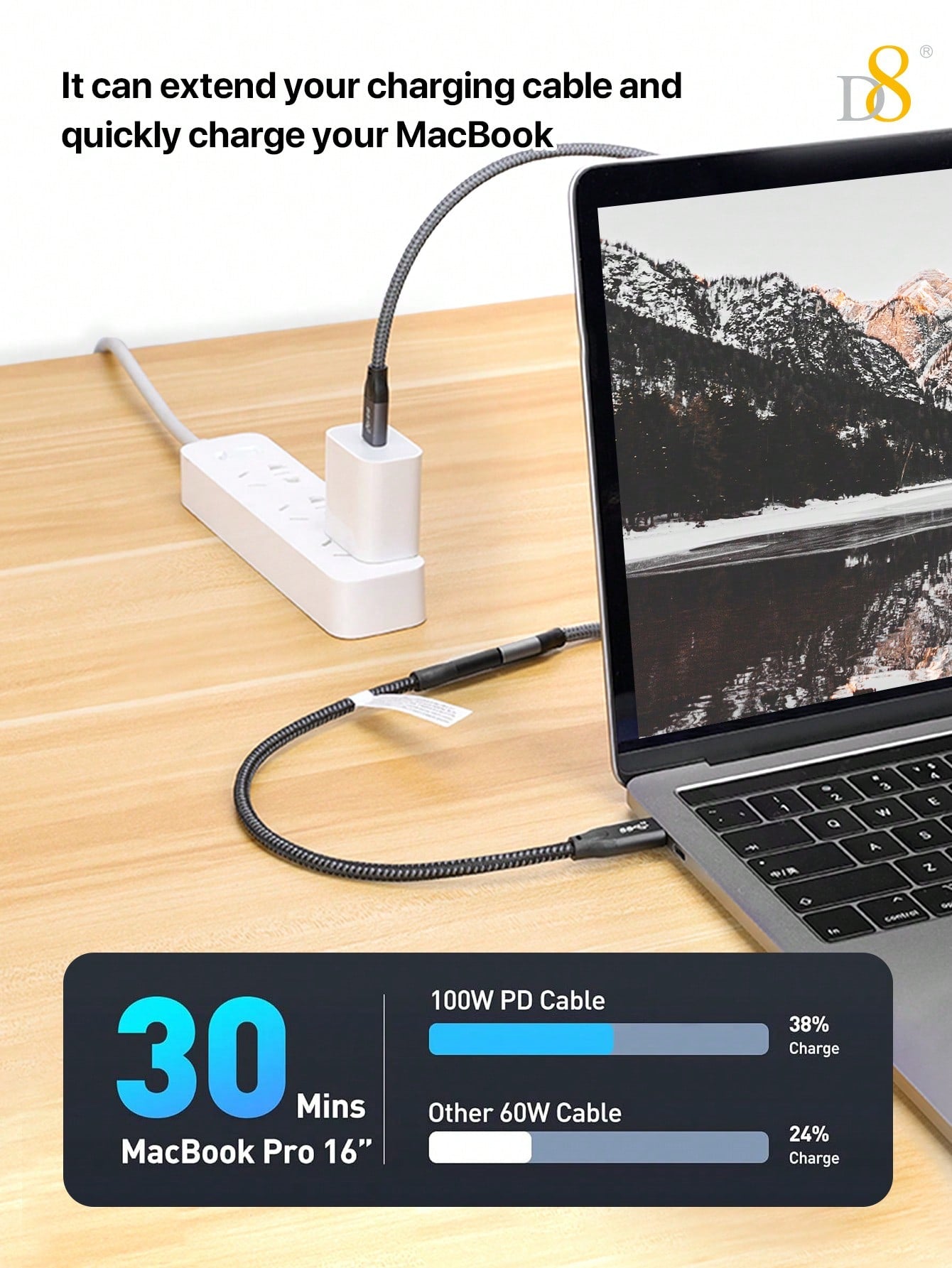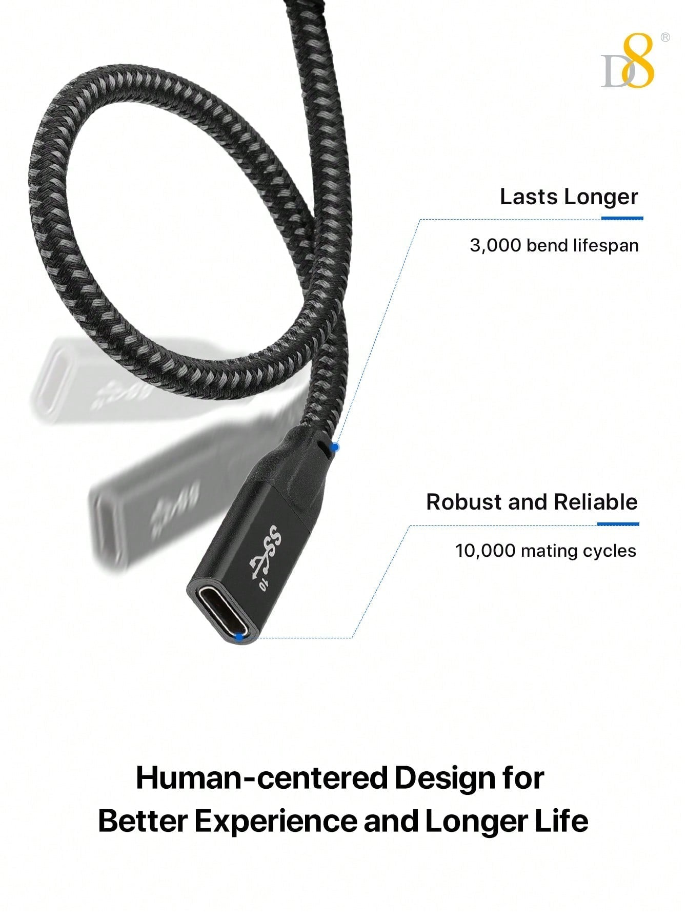 D8 USB 3.1 Type-C Male to Female Extension Cable – 10Gbps SuperSpeed, 4K HD Support, Compatible with iPhone 16 & iPad Pro