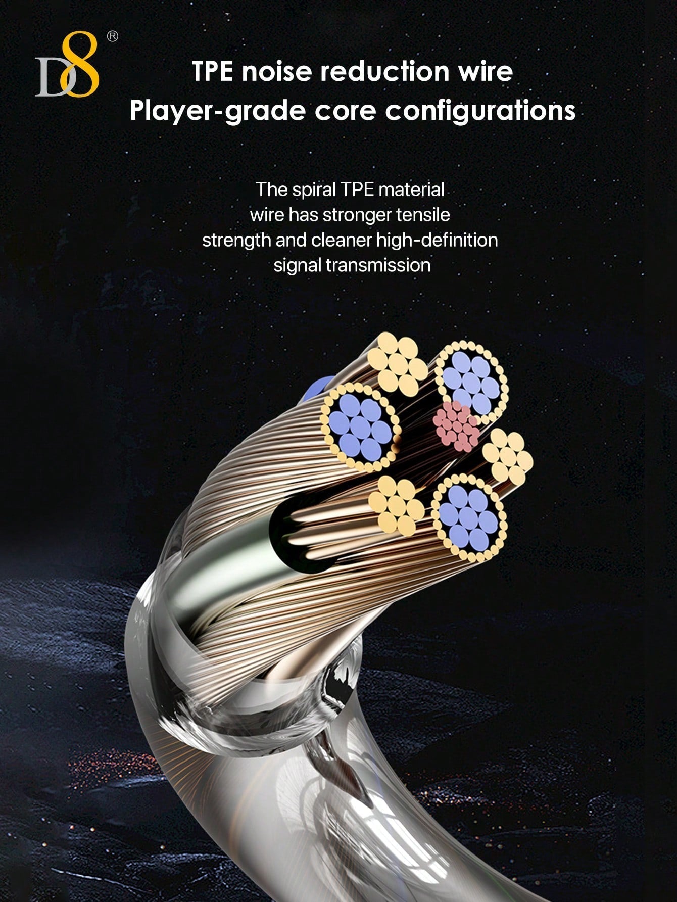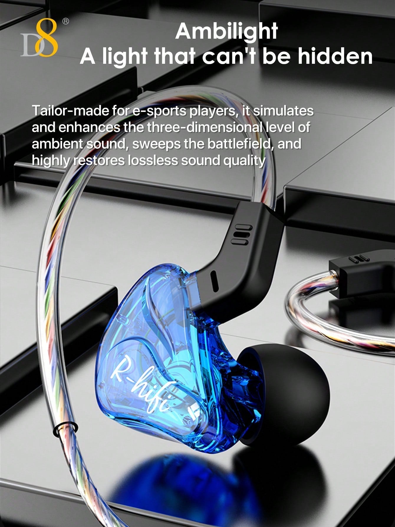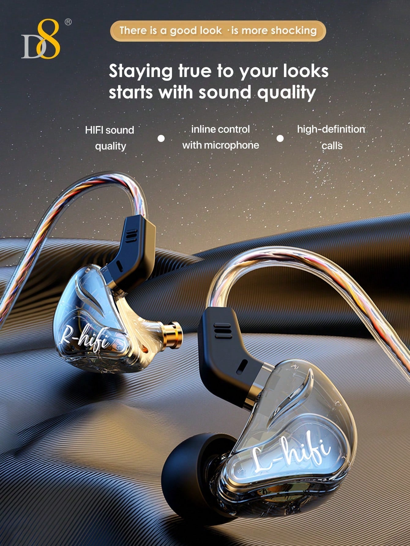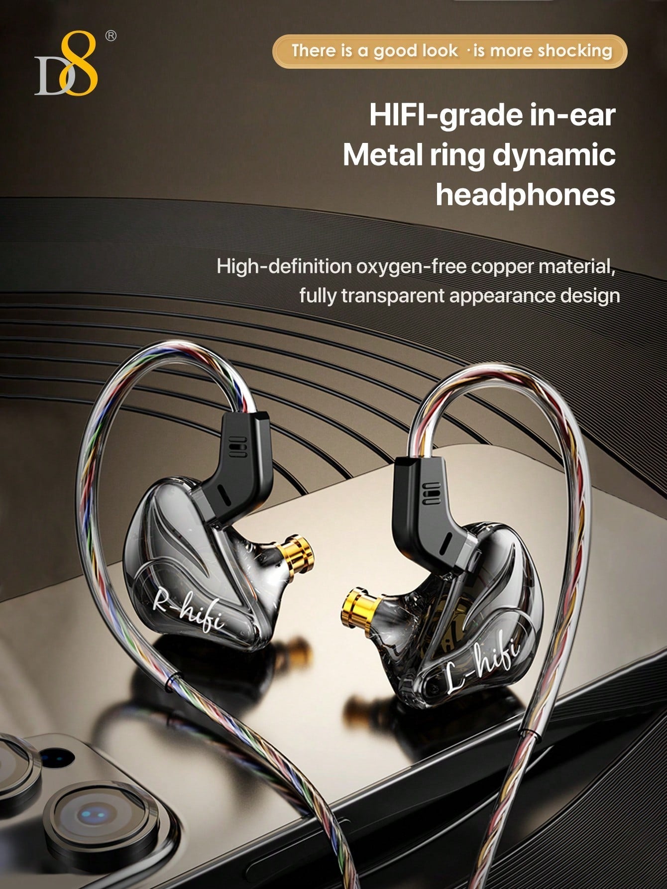 D8 USB-C Wired Earbuds, Mic, Controls, Sport Earhook, for iPhone/Galaxy/iPad