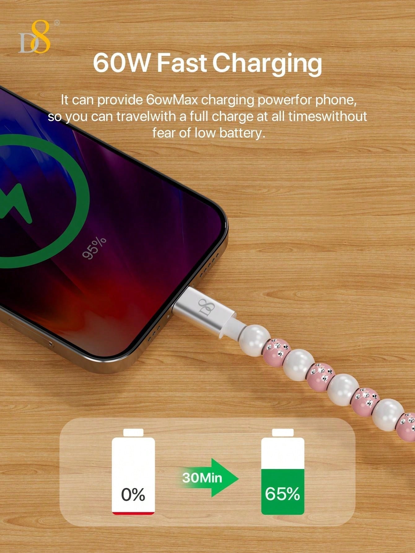 The D8 USB C to Type C Cable (3.3ft, PD 60W) is the ultimate fast charging solution for all your USB-C compatible devices. Whether you need to charge your iPhone 15 Pro Max, iPad Pro, or Samsung Galaxy, this braided beaded cable offers a fast and secure connection. With PD 60W power delivery, it ensures efficient charging for phones, tablets, laptops, and other devices. The 3.3ft length provides the perfect balance of reach and convenience, making it ideal for home, office, or on-the-go use.