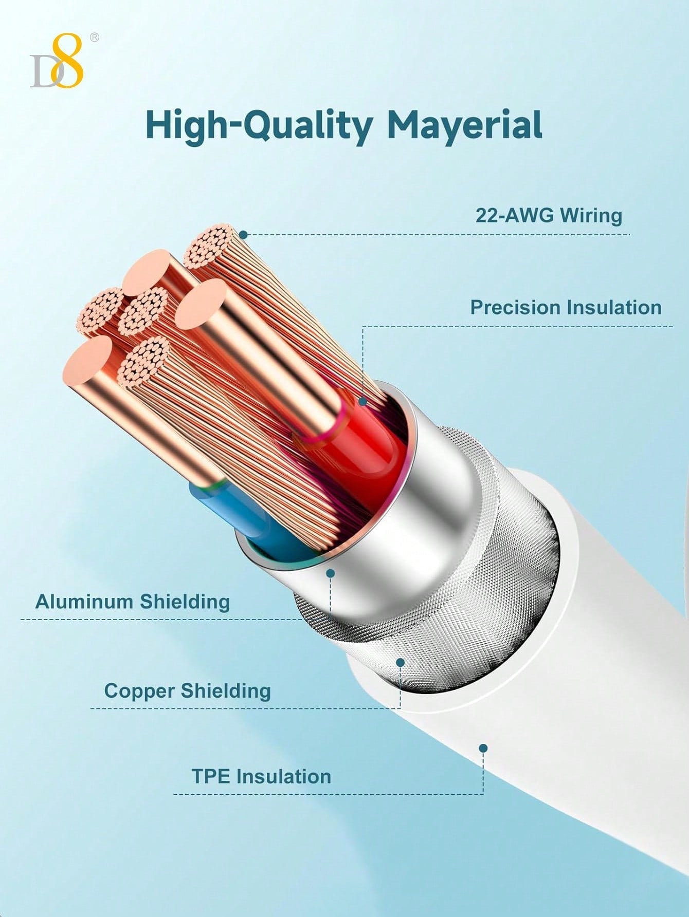 - Premium Construction: The D8 USB-C cable is crafted with durable materials, ensuring longevity and protection against wear and tear.