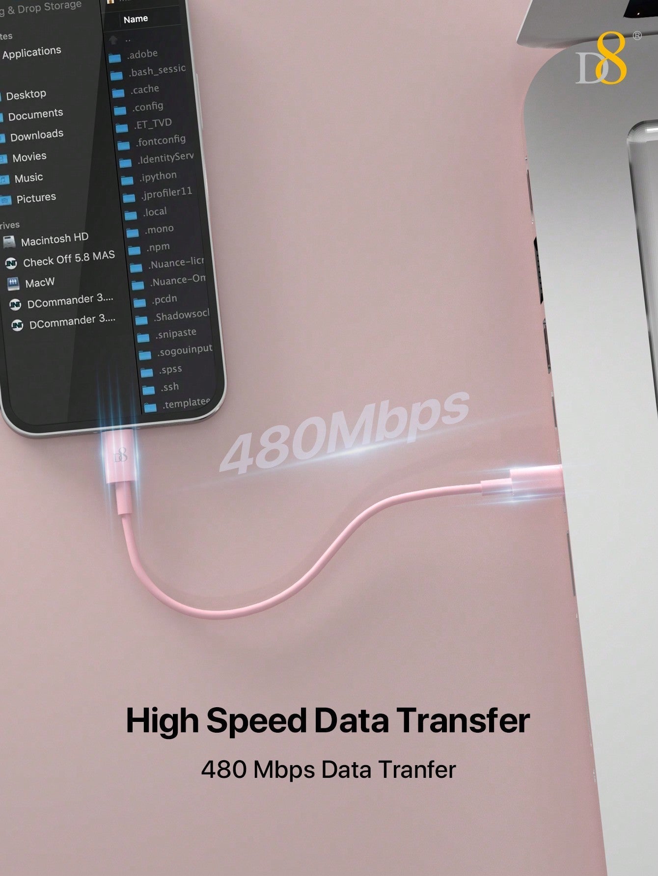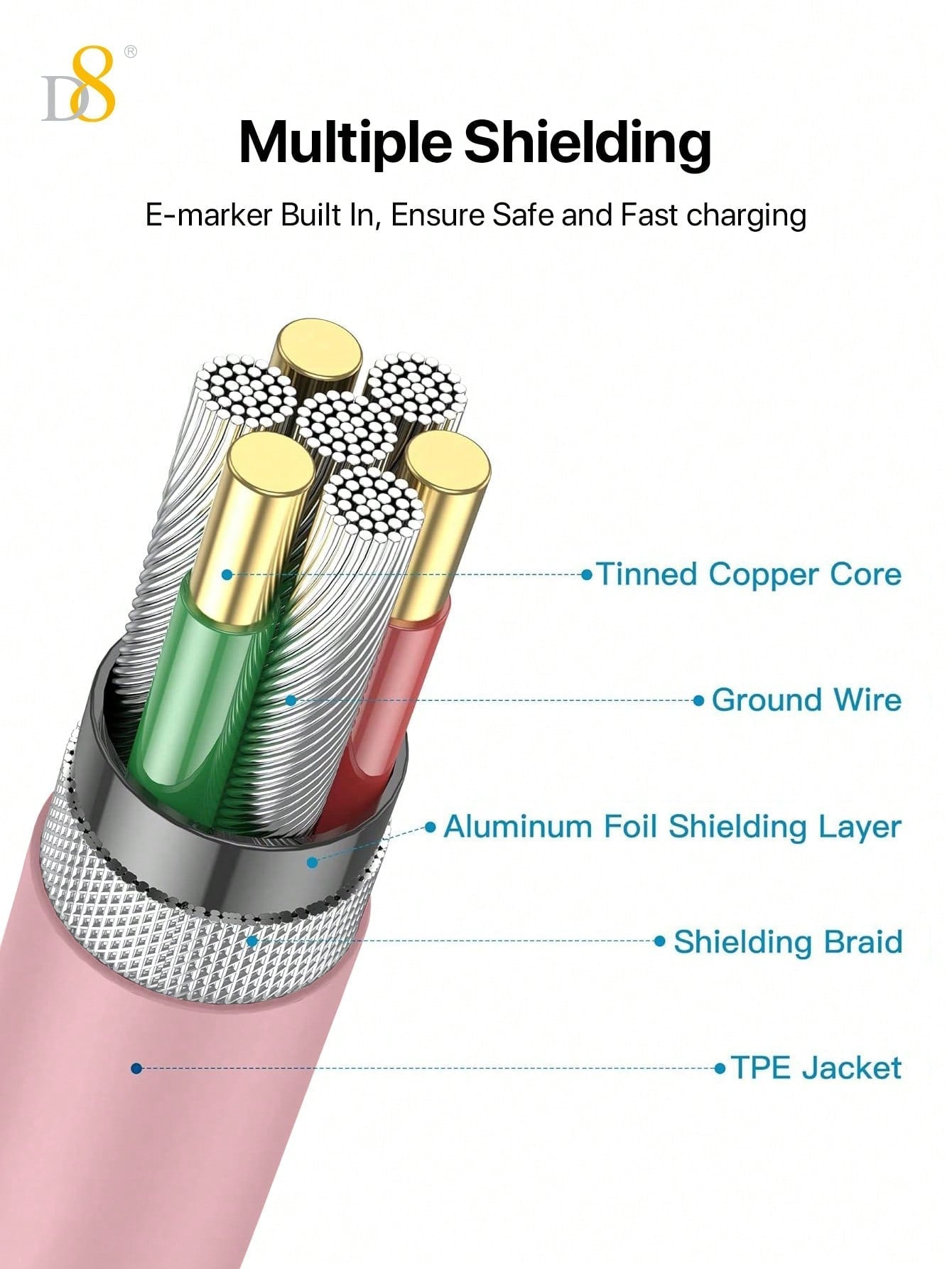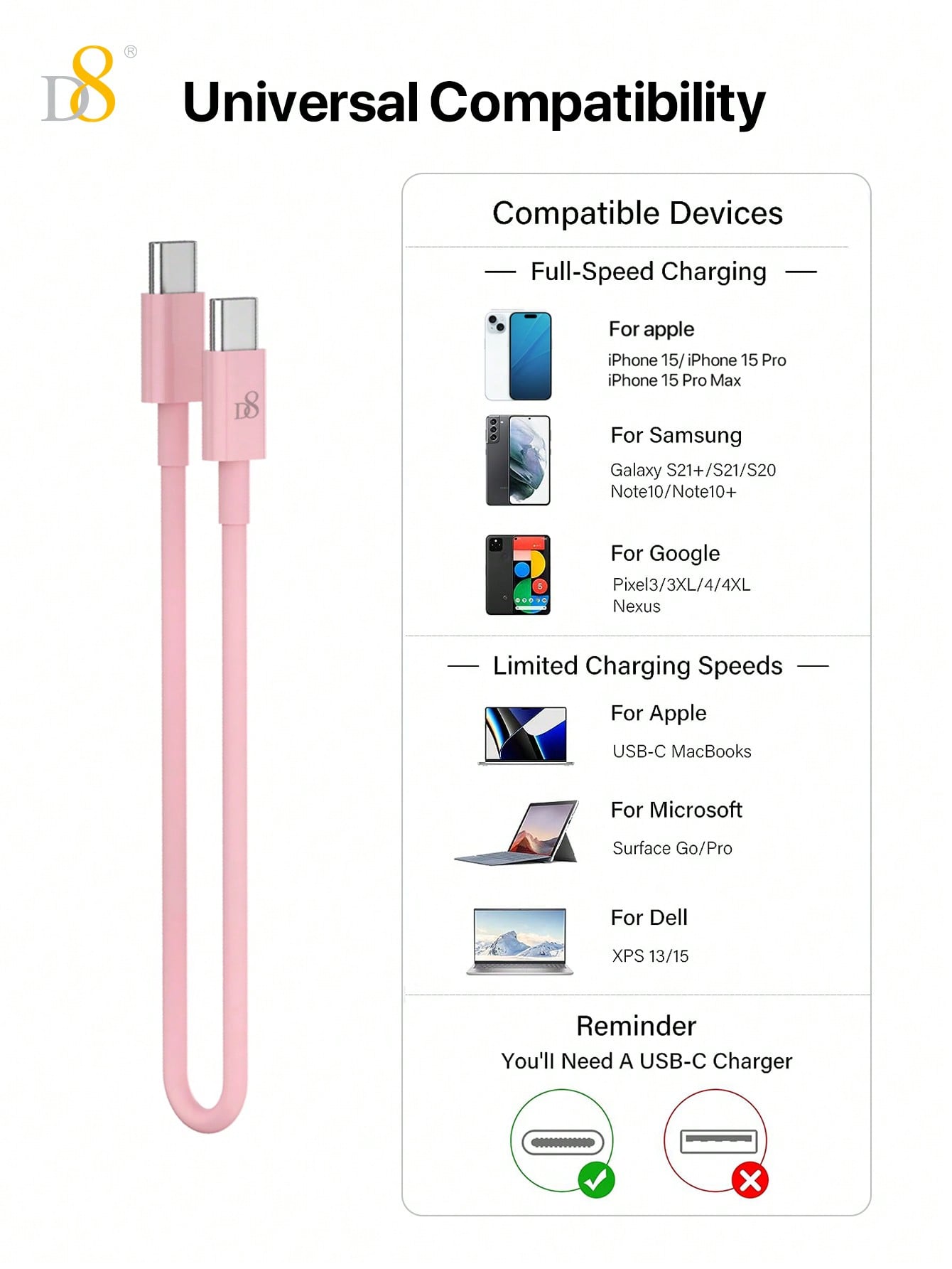 The D8 USB C to USB C Cable (0.83ft) is a premium fast-charging solution designed to meet the needs of modern devices. Whether you're charging your iPhone 16, iPad Pro, or Samsung Galaxy S23, this Type C charging cable offers 60W power delivery for lightning-fast charging. The 0.83ft (25cm) length provides the perfect balance between portability and functionality, making it ideal for compact spaces, travel, or everyday use.