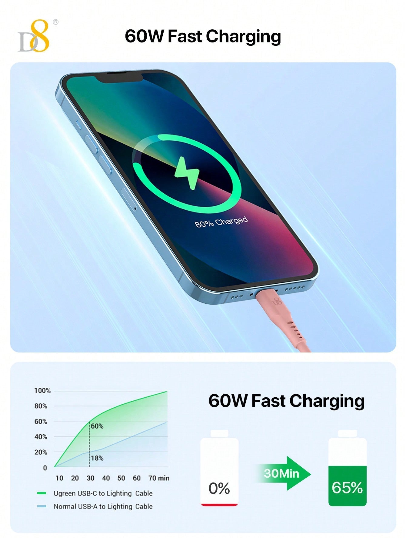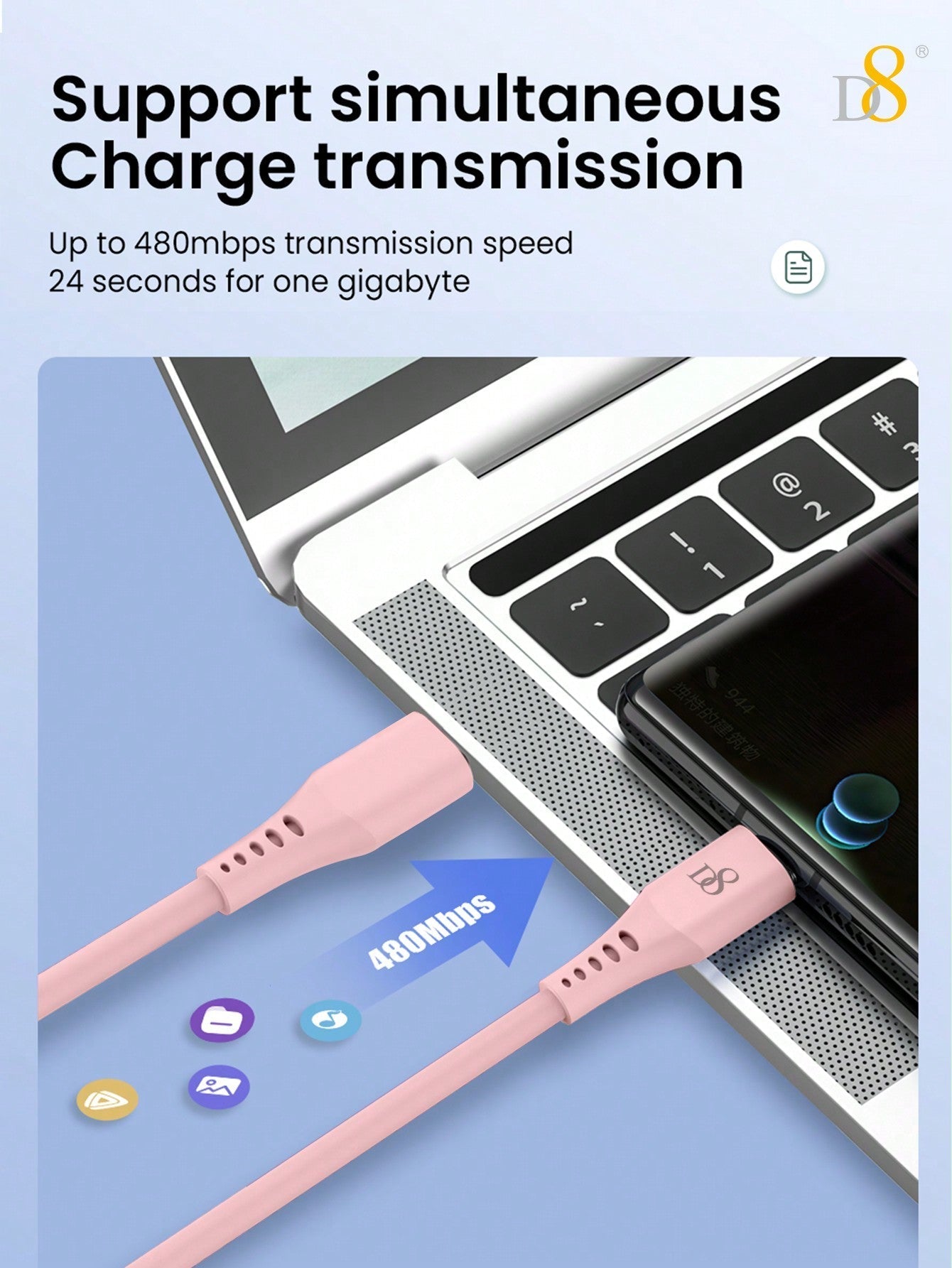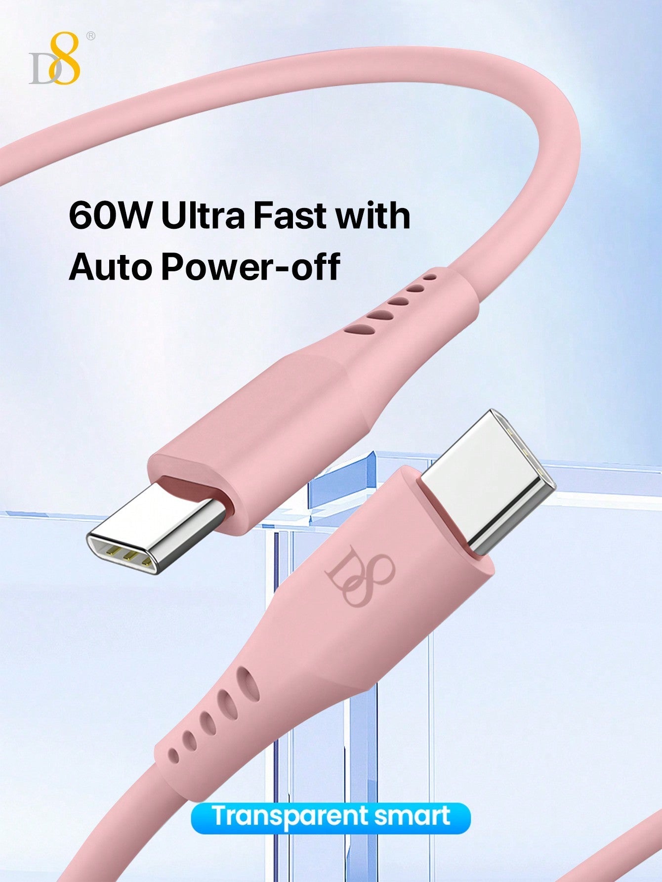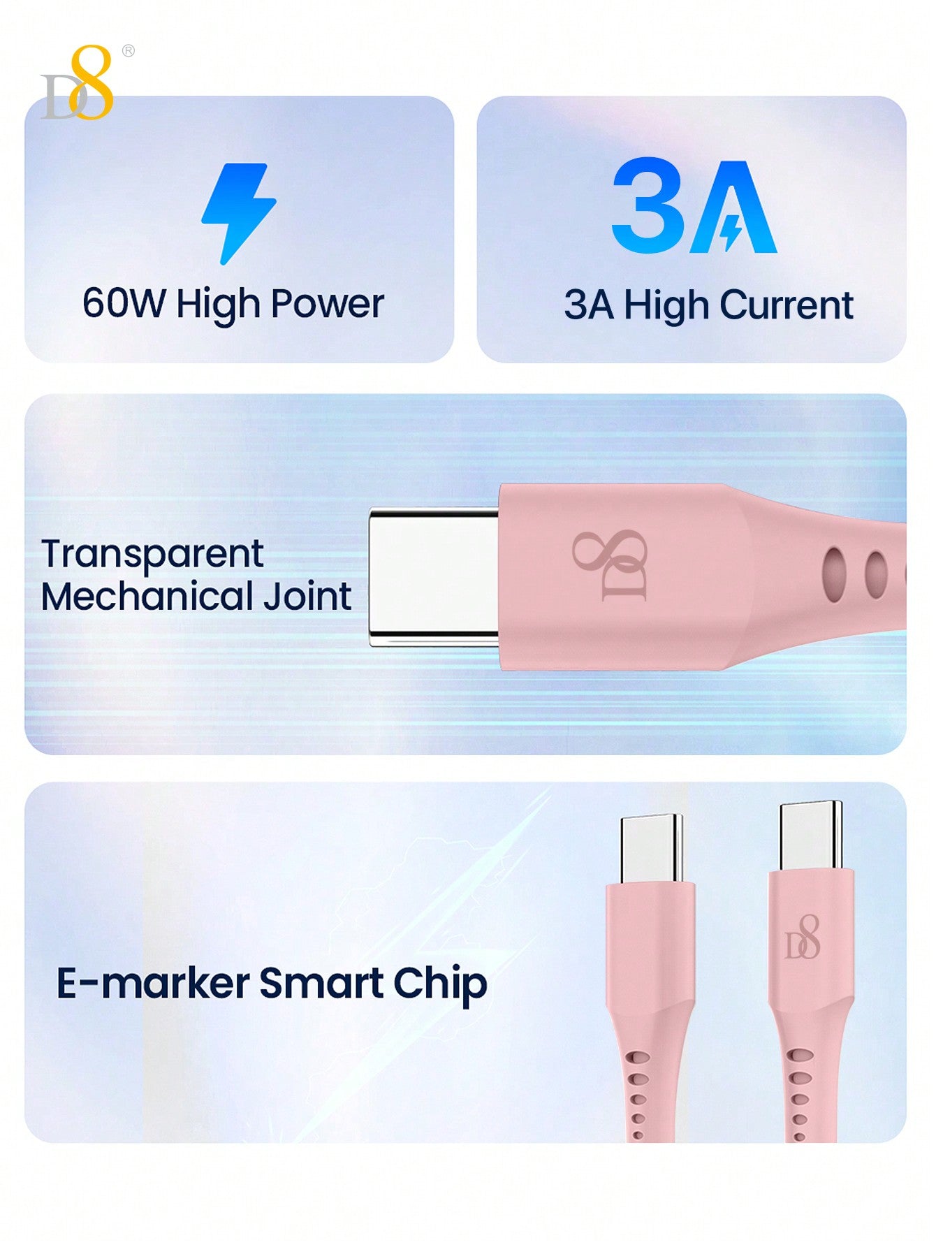 The D8 USB C to USB C Cable is a reliable and versatile choice for fast charging and data transfer. Featuring 3A fast charging, a soft silicone design, and USB 2.0 compatibility, this cable is perfect for MacBook, Chromebook, and other USB-C devices. With a convenient 1-meter length, it's a must-have accessory for both home and travel use.