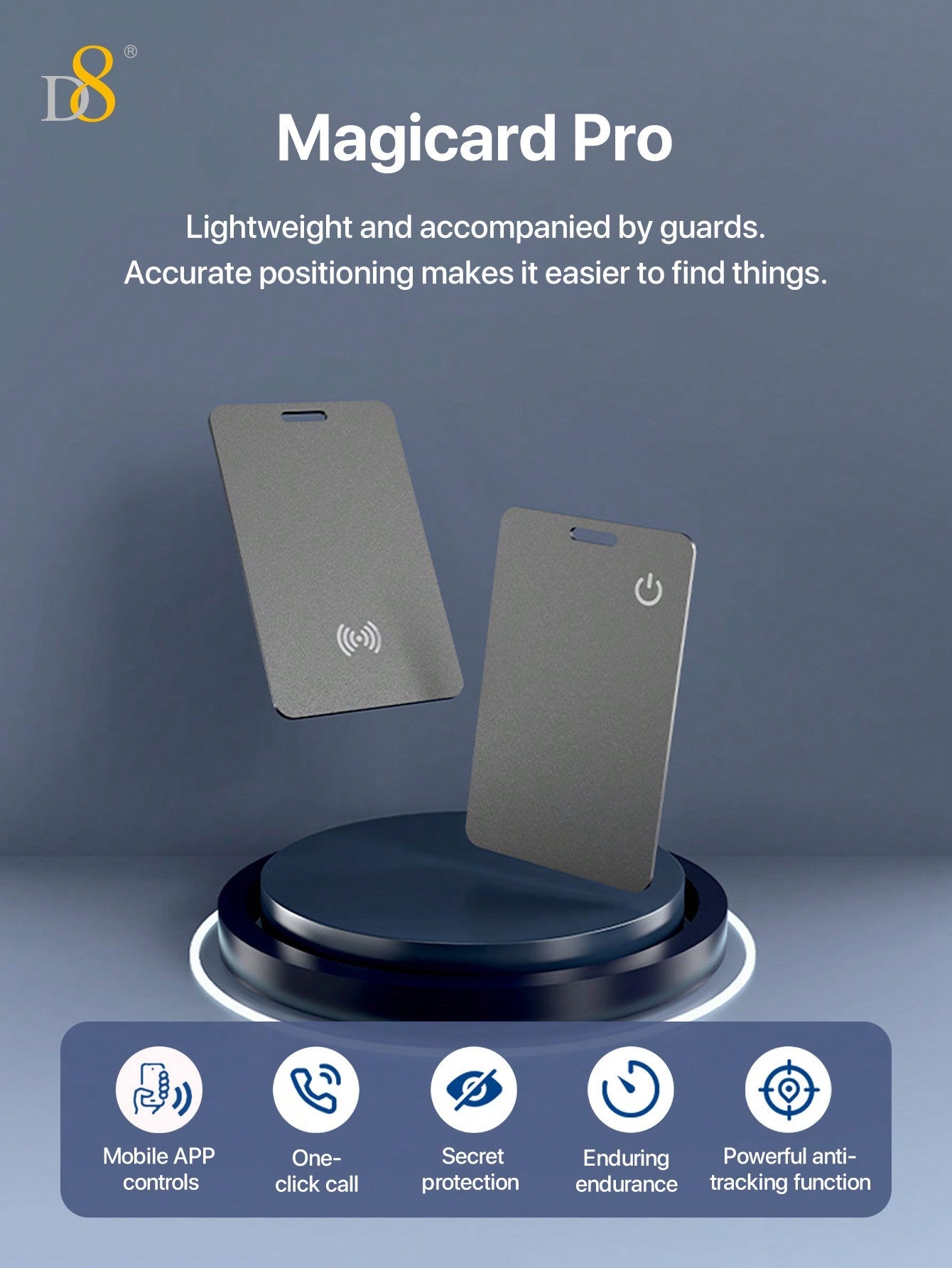 Product Intro: Never lose your valuables again with the D8 Wallet Tracker Card. This compact, Apple MFi Certified wireless tracker works seamlessly with the Apple Find My app (iOS only) to help you track your wallet, phone, passport, luggage tags, and more. With IP67 waterproof rating and a long-lasting battery, this device ensures that your important items are always within reach. Wireless charging makes it easy to keep your tracker powered without any hassle.