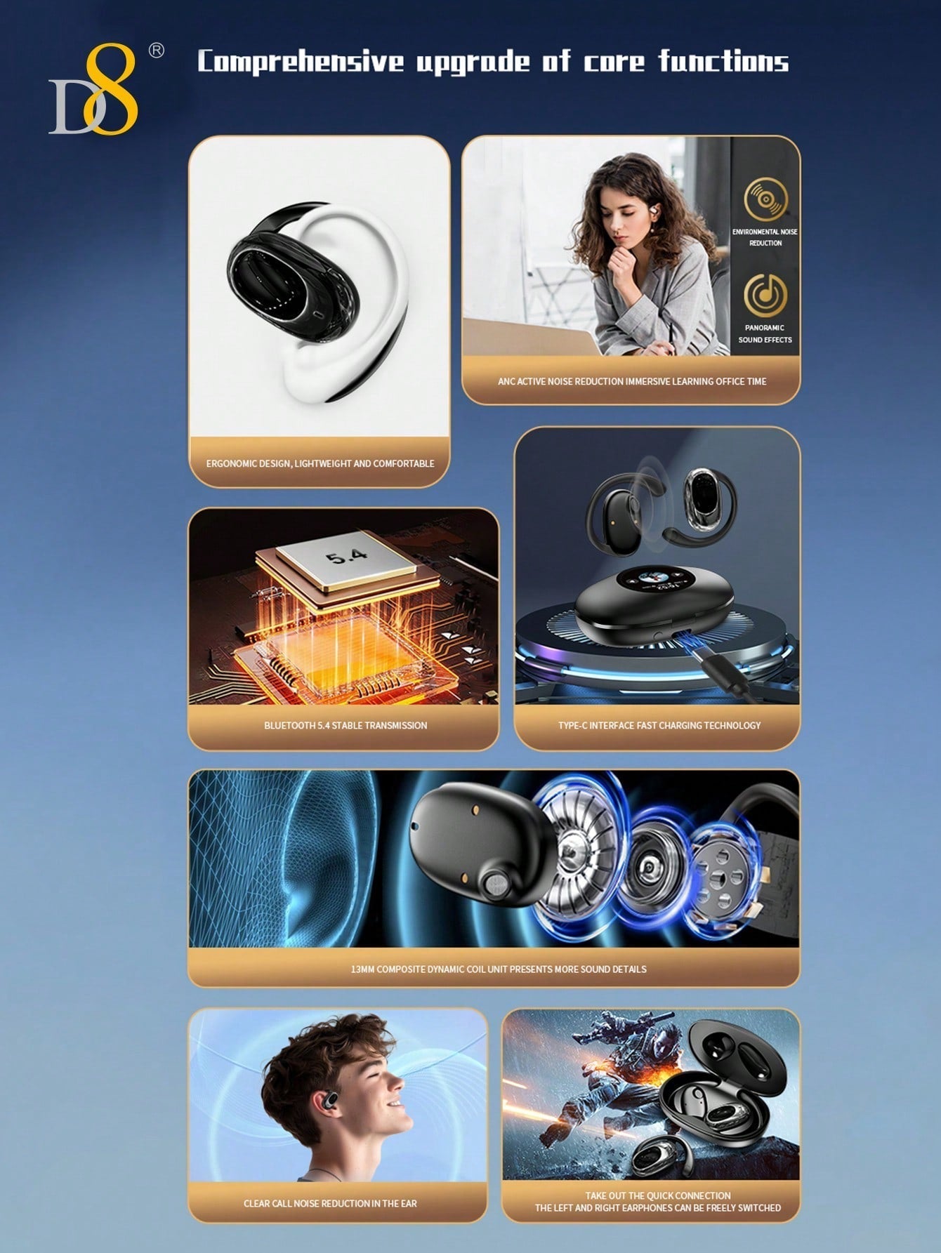 The D8 Wireless Earbuds are designed for those who demand high-quality audio and reliable performance. With ENC noise-canceling, LED display, and an ergonomic sports design, these earbuds offer a superior audio experience for running, workouts, and gaming. The combination of comfort, durability, and sound quality makes these wireless earbuds the perfect addition to your active lifestyle. They also make a thoughtful Valentine’s Day gift for anyone who loves tech, fitness, or gaming. Stay connected, stay active, and enjoy premium sound with the D8 Wireless Earbuds.