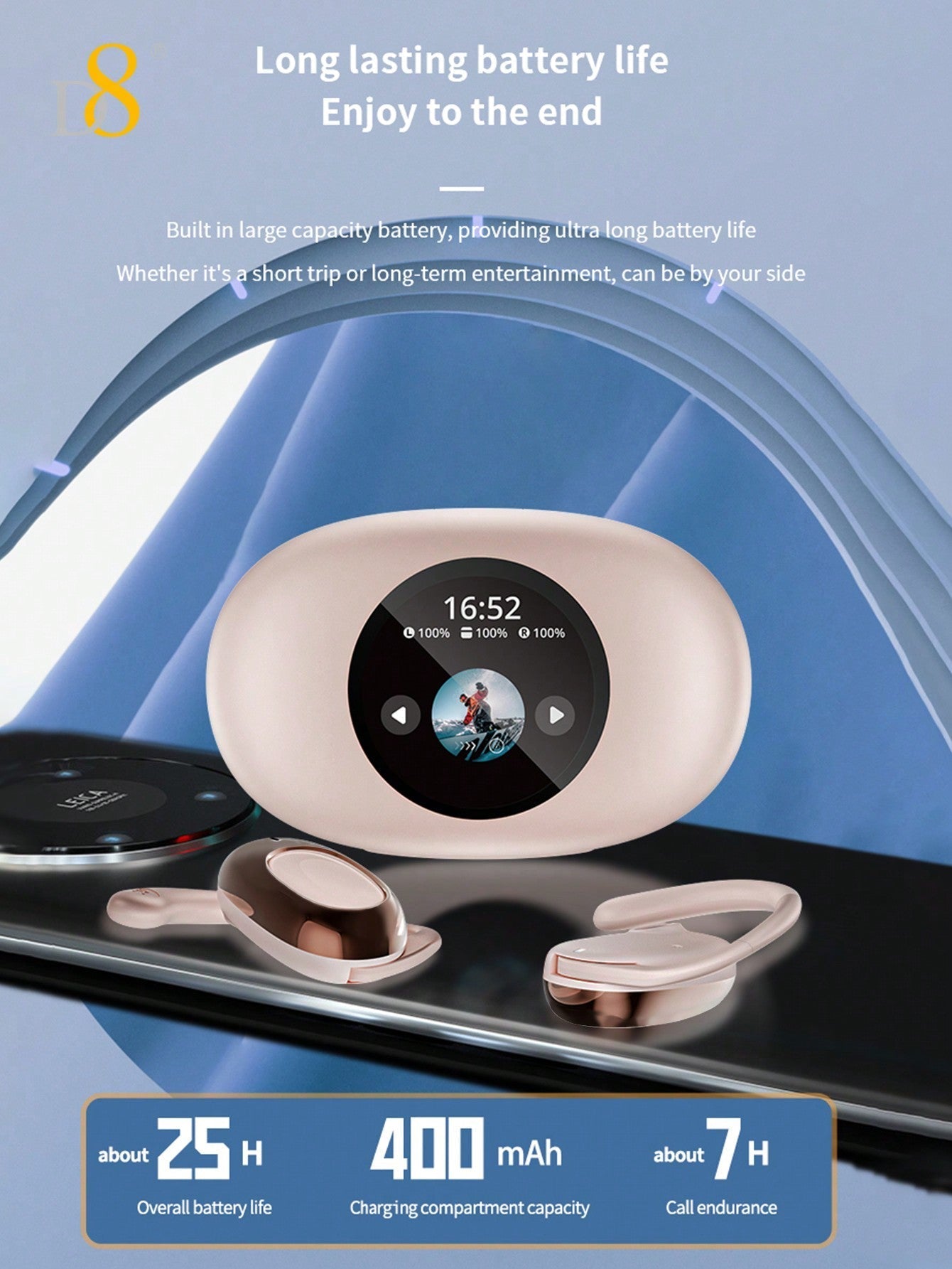 D8 Wireless Earbuds, LED Display, ENC Noise Canceling, Sport Design, Mic