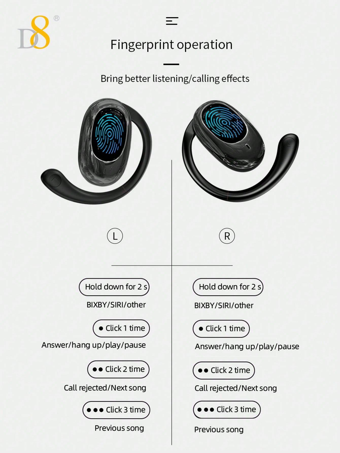 The D8 Wireless Earbuds are the perfect blend of advanced technology and comfort, designed for sports, workouts, gaming, and everyday listening. With a sleek LED display and cutting-edge ENC noise-canceling microphone, these wireless earbuds deliver a premium audio experience while ensuring clear communication during calls or gaming sessions. The ergonomic sports design and earhook feature ensure a secure and comfortable fit, making them the ideal companion for your active lifestyle.