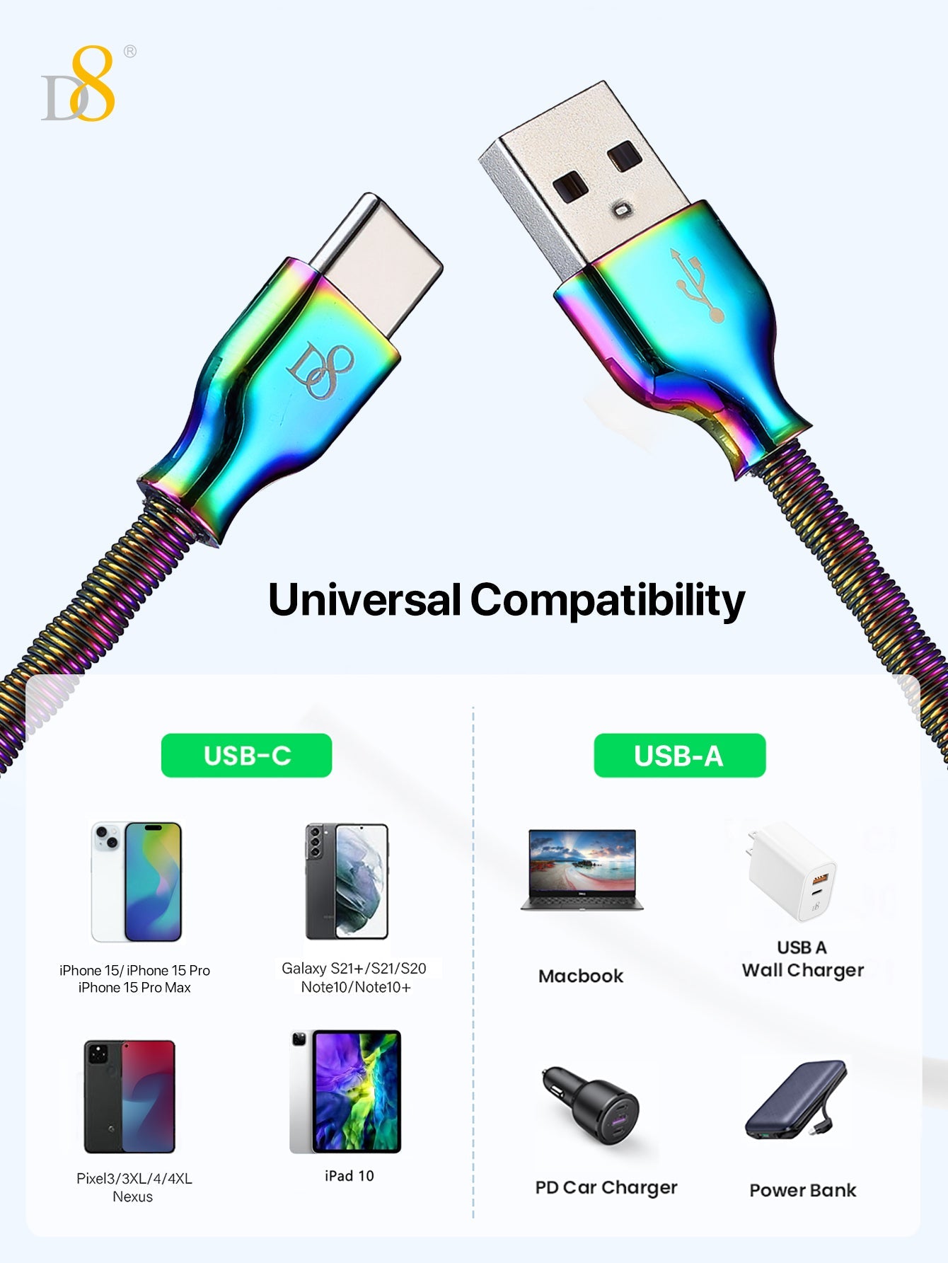 Experience the blend of style and performance with the Dazzled Metal Type-C USB Cable from Dynamic8. Whether you're charging your smartphone, tablet, or any other Type-C device, this cable delivers fast and reliable power. Order yours today and enjoy a premium charging experience!