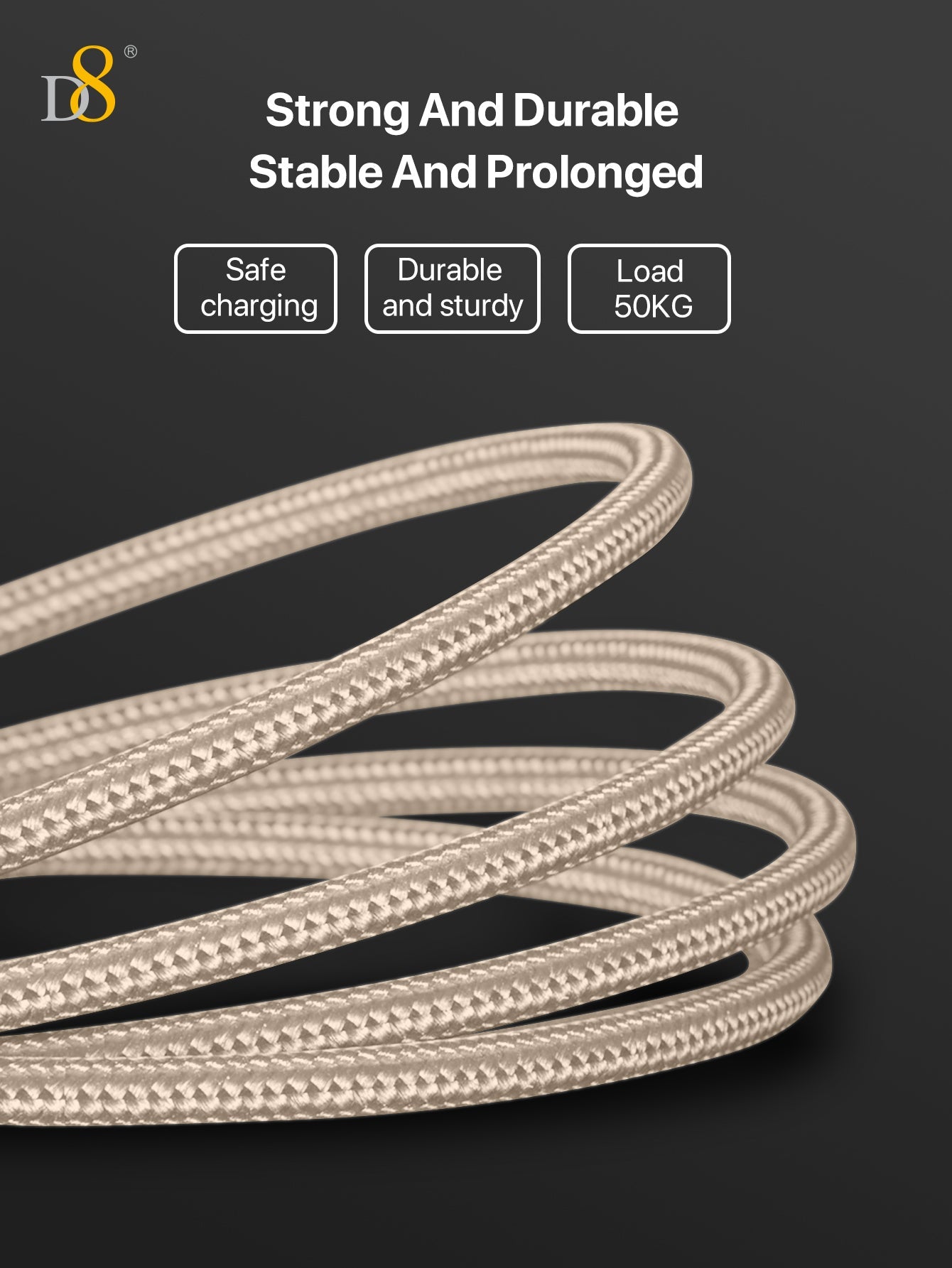 Available in three stylish colors - Black, Silver, and Gold - this cable is both strong and fashionable. It is 1 meter in length, with an outer diameter (OD) of 3.6mm, and comes in a neat box package. The laser-etched logo adds a touch of elegance to the design.