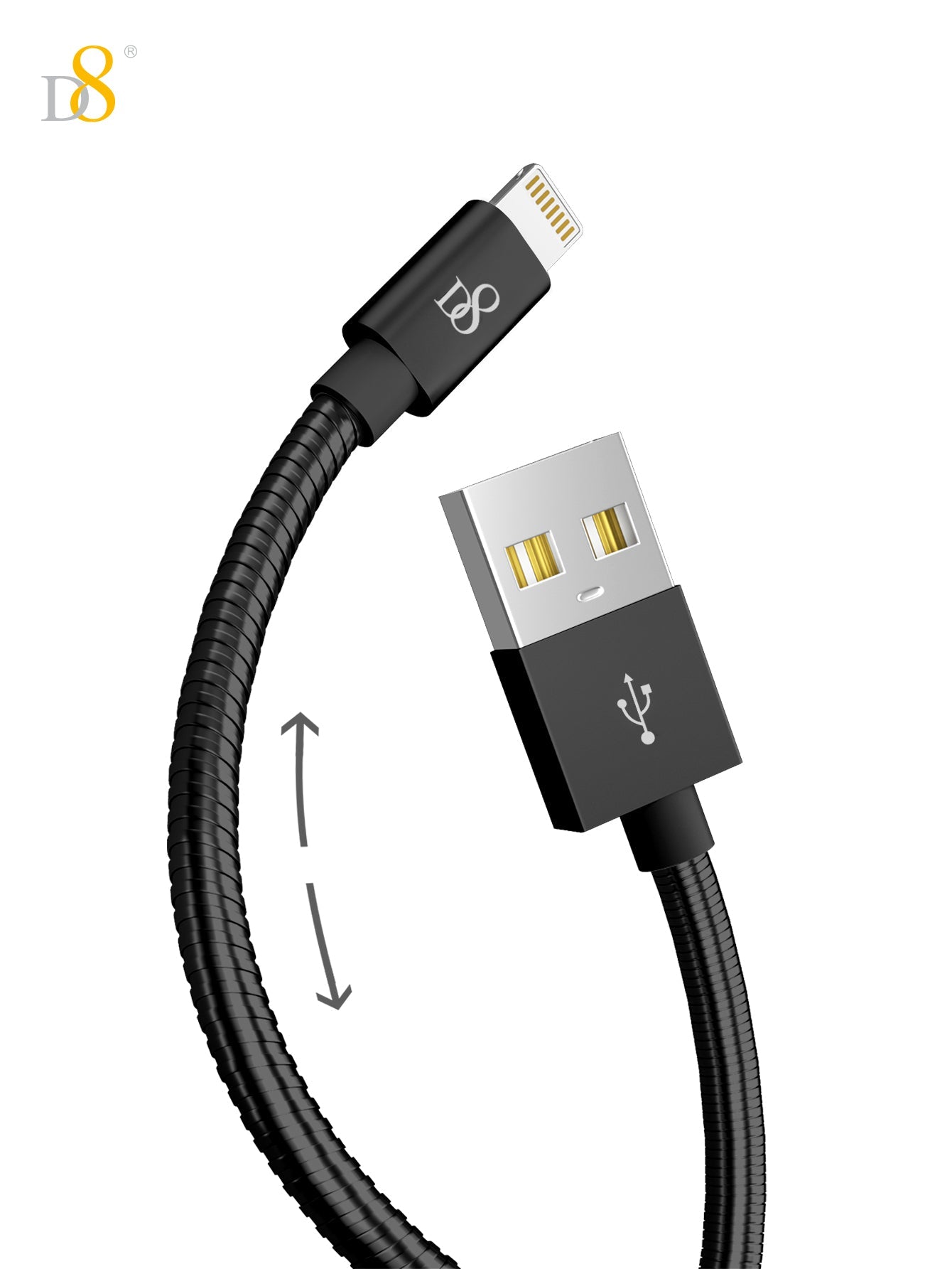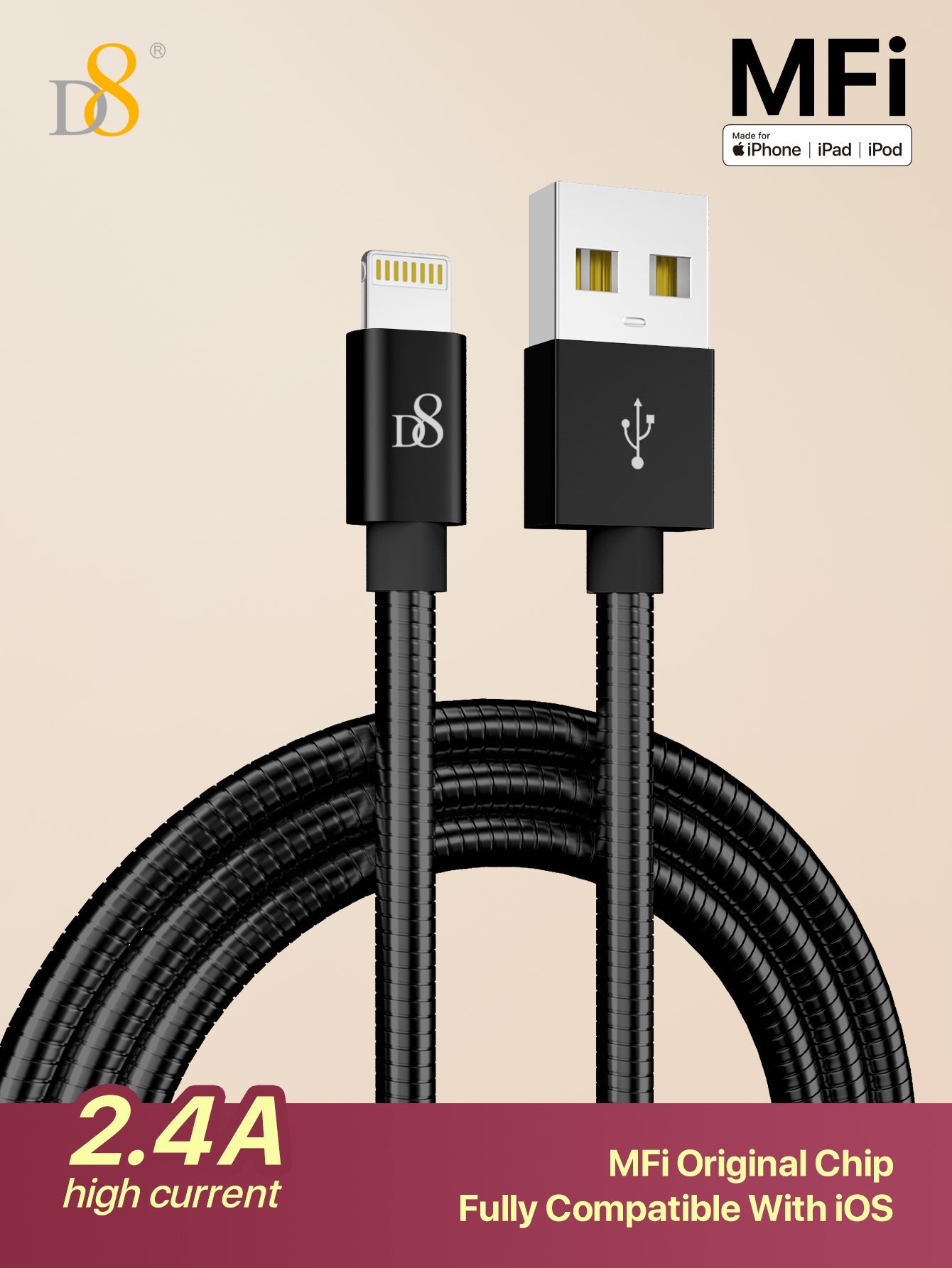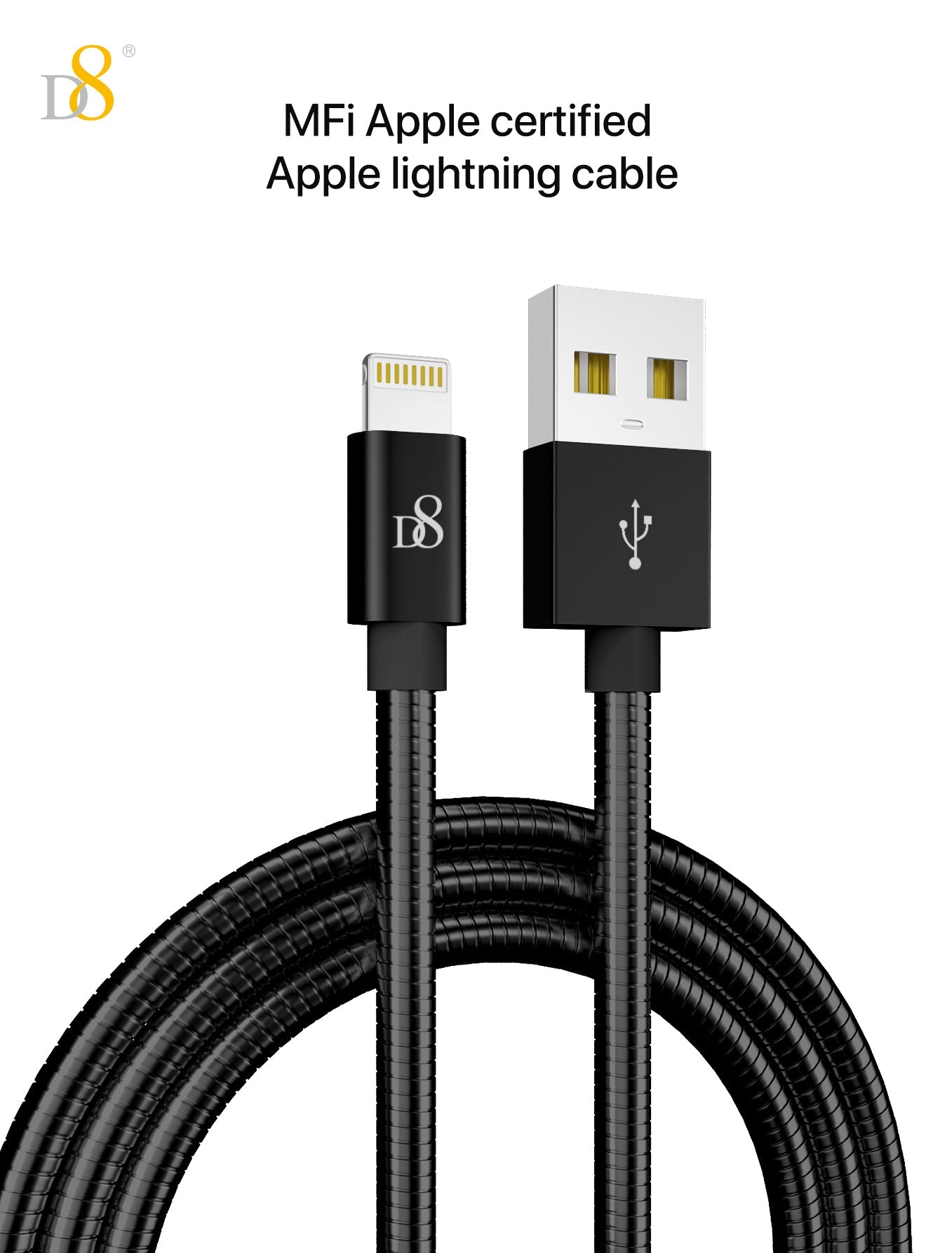 D8 Stainless Jacket MFi Lightning to USB Charging Cable