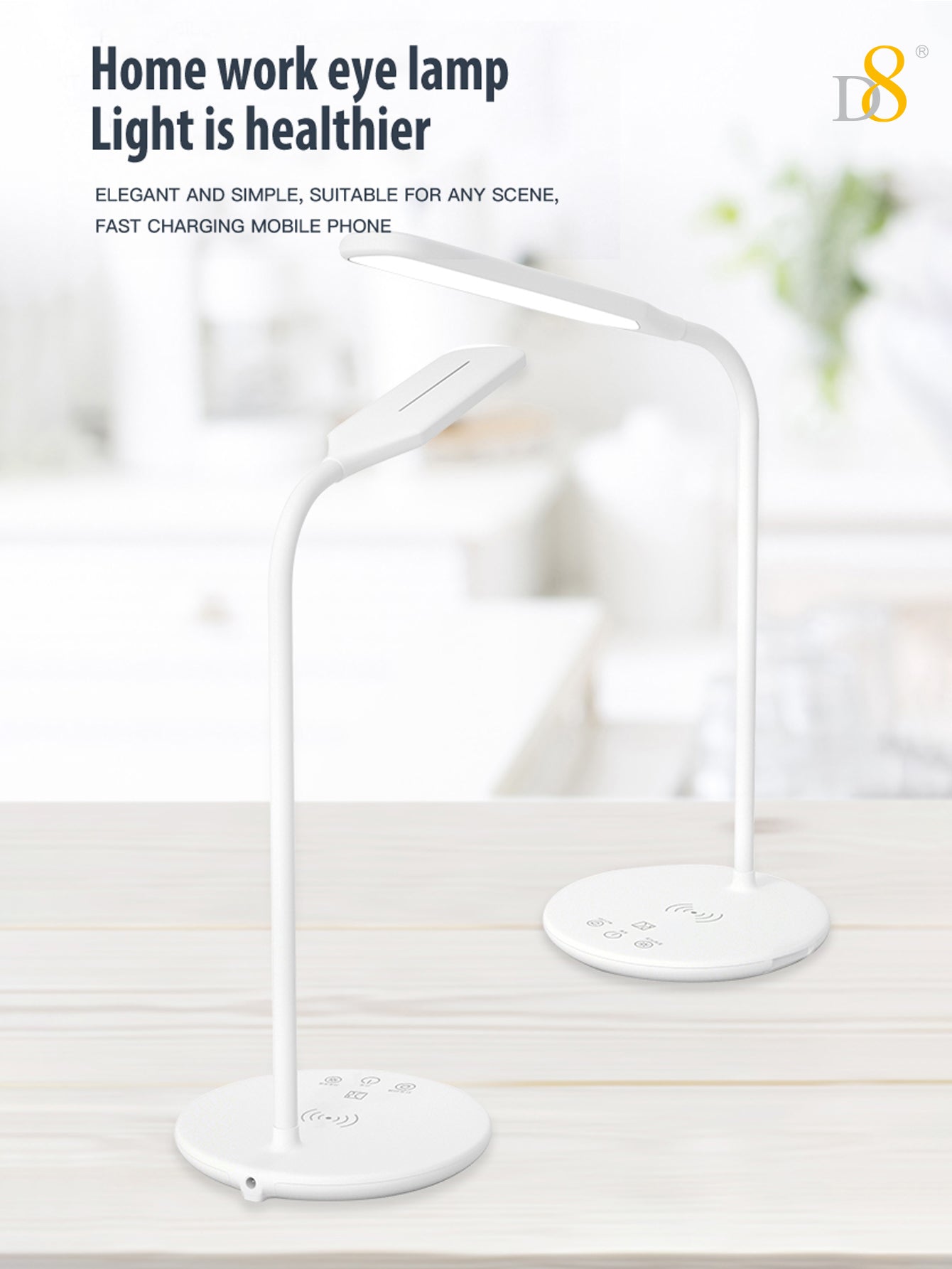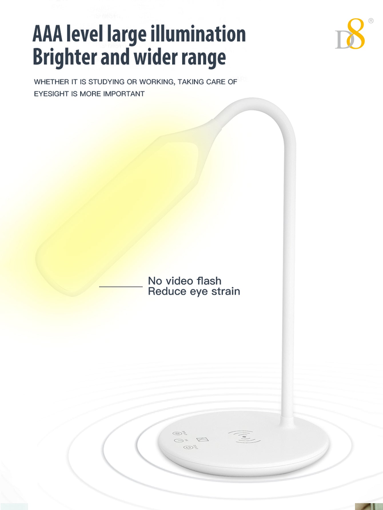 Conclusion: Upgrade your workspace or living area with the Dynamic8 Wireless Charging LED Desk Lamp, designed to meet modern-day demands for both illumination and device charging. Experience the convenience of integrated wireless technology and versatile lighting options. Order now to enhance your productivity and lifestyle!