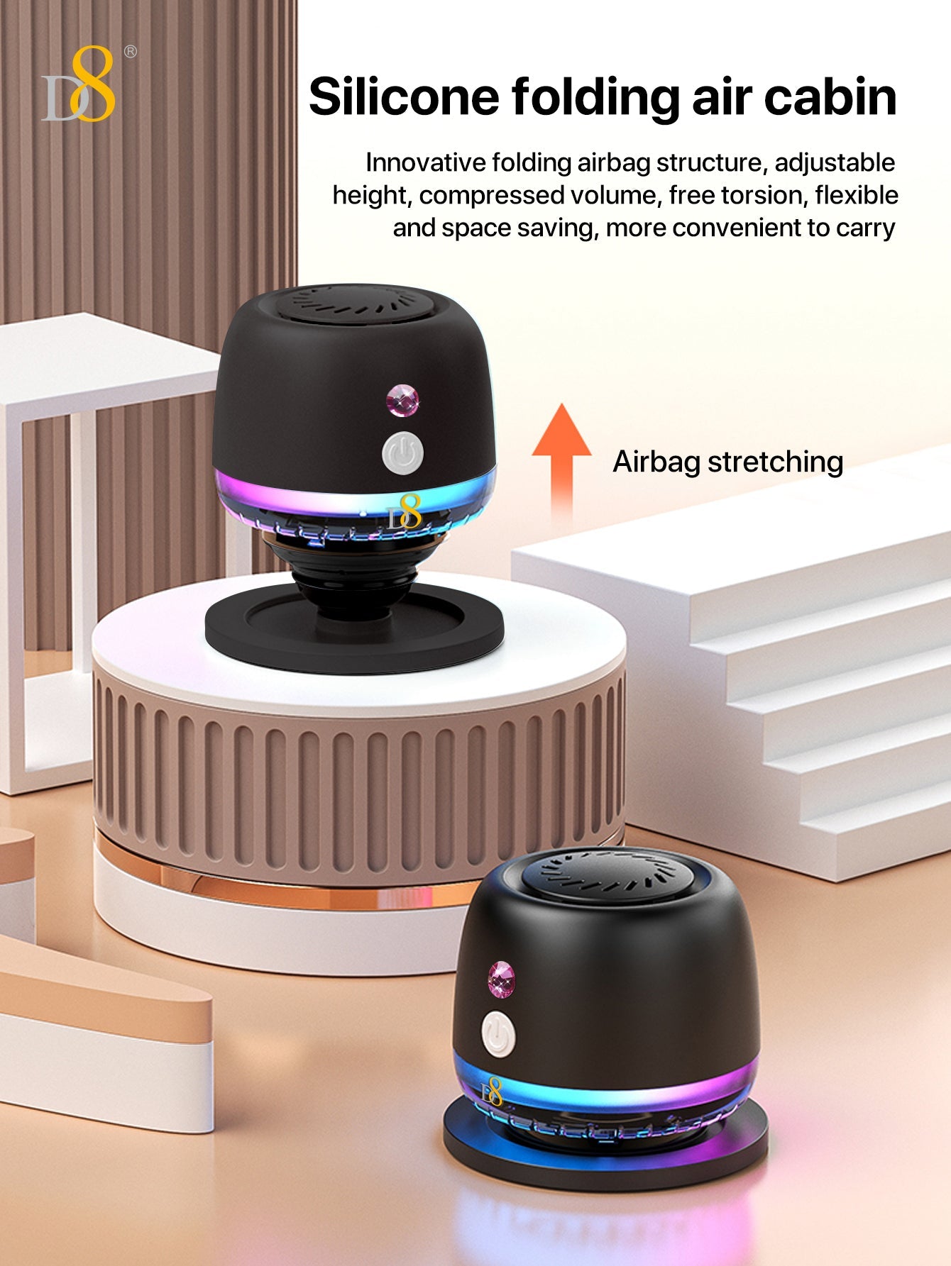 Meet the D8 Wireless Magnetic Bluetooth Speaker, a revolutionary portable audio companion that blends innovation with style. Featuring a foldable silicone air cabin for adjustable height and space-saving portability, this mini speaker packs a punch with 5W bass-rich sound, vibrant RGB lighting, and magnetic accessories. Perfect for travel, home decor, or gifting, it’s designed to elevate your audio experience anywhere.