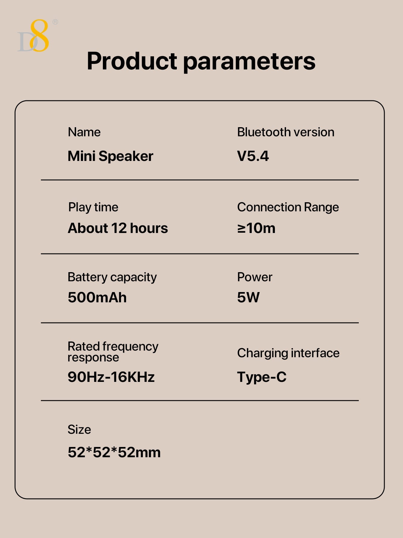 • 5W Bass Diaphragm & Internal Magnet: Deep, immersive sound with crisp clarity for its size.