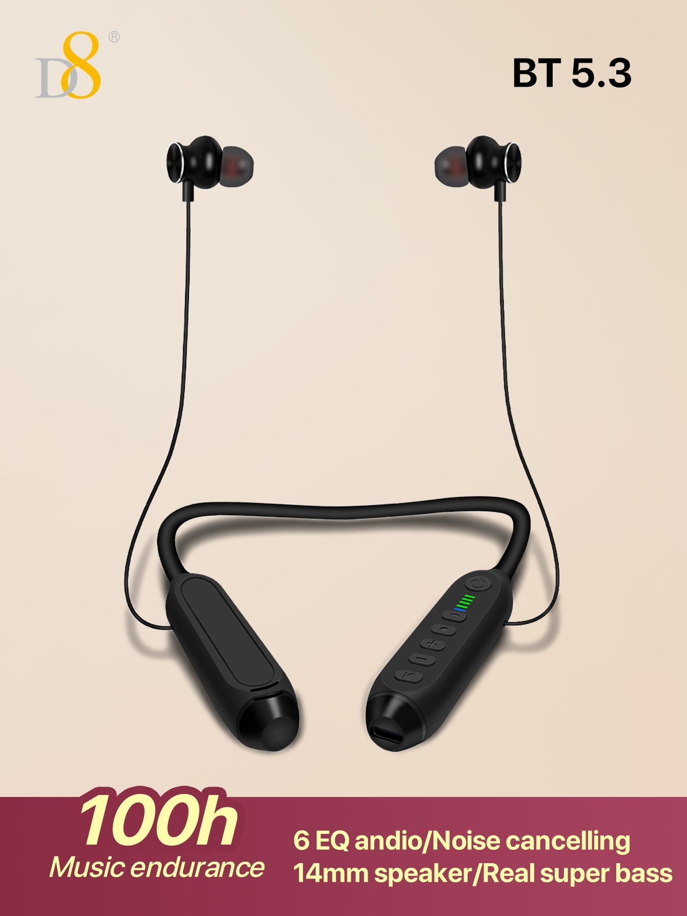 Elevate your audio experience with the D8 Wireless Neckband Headphones, designed for those who demand endurance, quality, and versatility. Whether you’re crushing a workout, powering through a workday, or traveling cross-country, these headphones deliver 100 hours of playtime, studio-grade sound via Balanced Armature Drivers, and a waterproof magnetic design that stays secure through every adventure.